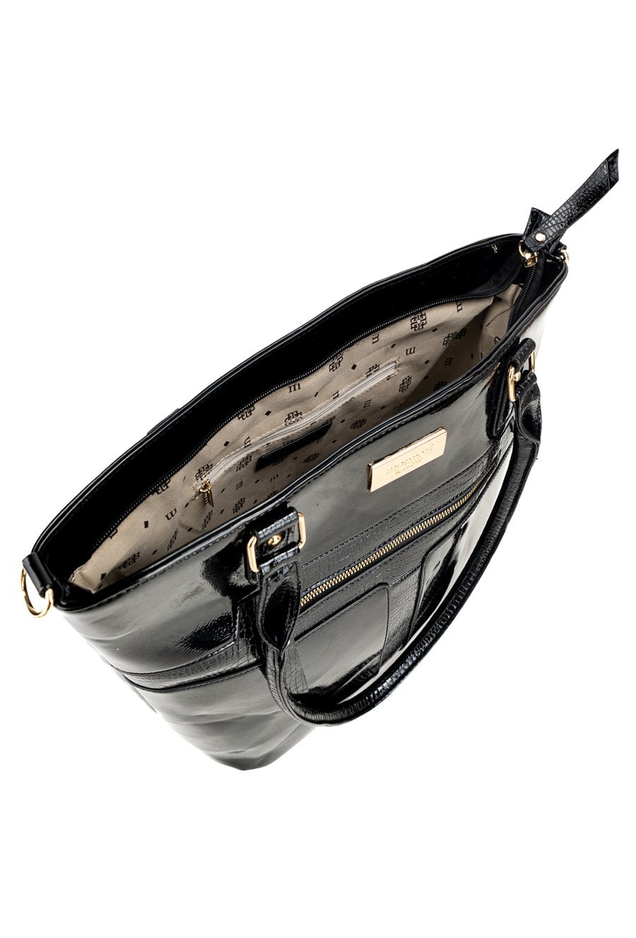 Torba damska z praktyczną kieszonką zapinaną na suwak z przodu i z tyłu, idealna na co dzień. Jednokomorowe wnętrze zapewnia łatwy dostęp do zawartości, a wygodne rączki umożliwiają noszenie torby w dłoni lub na ramieniu. Torbę należy przechowywać w dołączonym woreczku. Wymiary torby: 31 x 30 x 11,5 cm