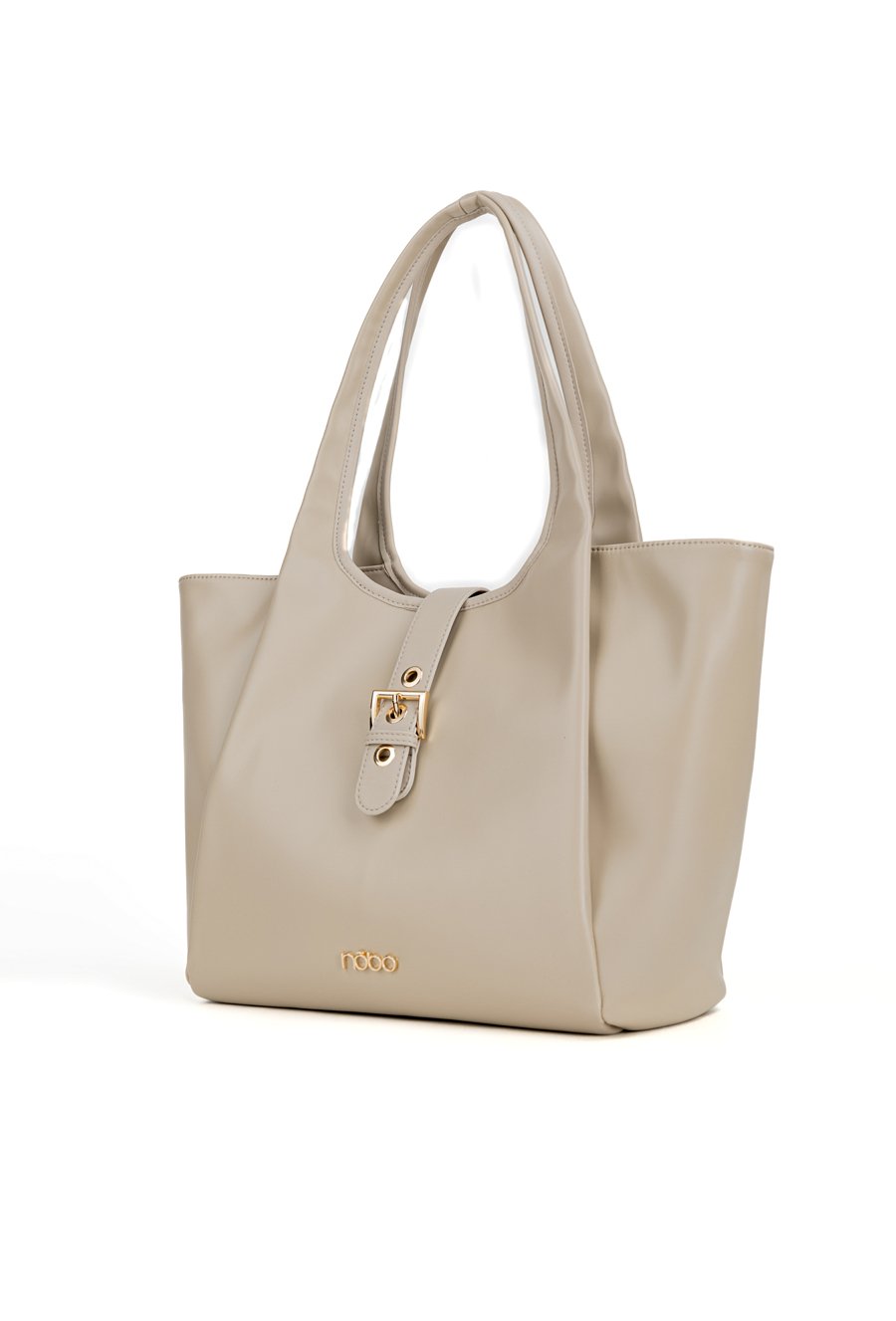 Pojemna torba damska typu shopper to idealny wybór na co dzień. Jednokomorowa konstrukcja została wykończona jasną, logowaną podszewką i wyposażona w liczne kieszonki, które ułatwiają przechowywanie i organizację drobiazgów. Model zapinany jest na suwak oraz dodatkowy pasek, co dodaje mu oryginalnego charakteru. Torba zawieszona jest na rączkach. Funkcjonalna, przestronna i stylowa – doskonała do pracy, na zakupy czy codzienne wyjścia. Torbę należy przechowywać w dołączonym woreczku. Wymiary: 45 cm x 30 cm x 13,5 cm.