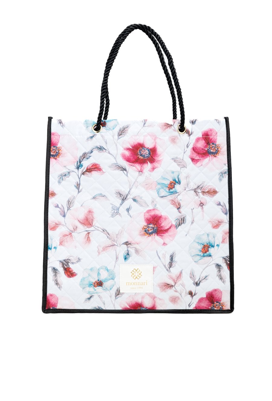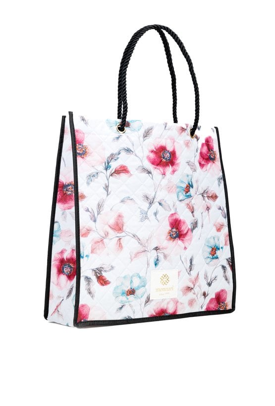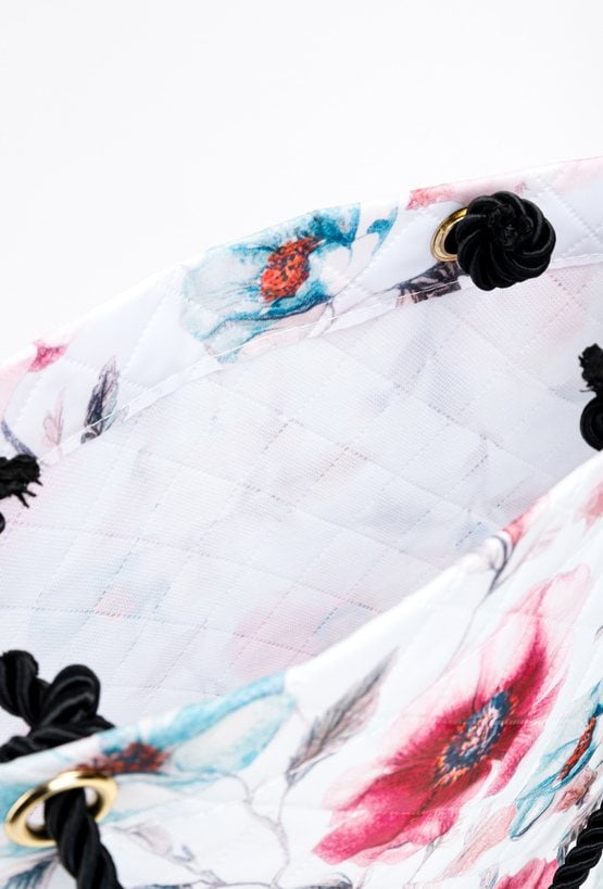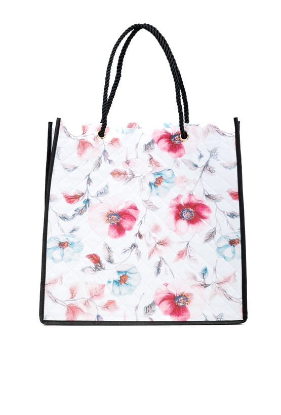 Shopperka damska o wymiarach 41 × 40 × 13 cm, doskonała na zakupy i codzienne wyjścia. Torba z kwiatowym wzorem została wyposażona w solidne, plecione rączki, które zapewniają wygodę noszenia nawet przy większym obciążeniu. Model bez zapięcia świetnie sprawdzi się podczas zakupów oraz w podróży jako praktyczny i stylowy dodatek.
