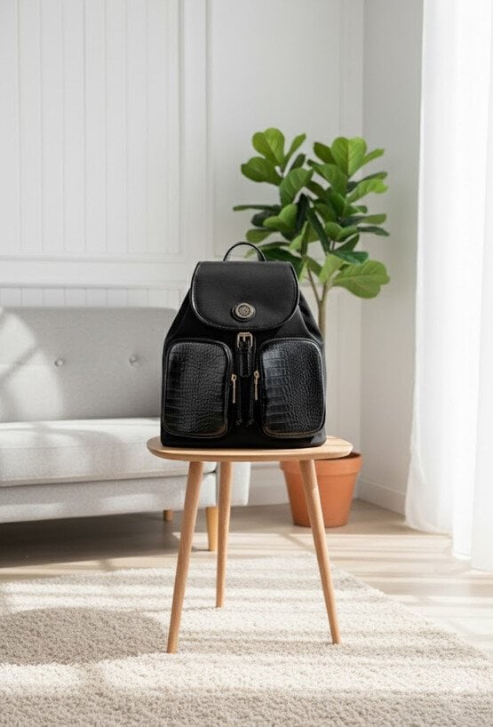 Duży plecak damski o praktycznym i stylowym designie. Jednokomorowy model z jasnym, logowanym wnętrzem, zapinany od góry na suwak oraz dodatkowo na klapę z napą, zapewnia bezpieczeństwo przechowywanych rzeczy. Funkcjonalności dodają dwie zasuwane kieszonki z przodu – idealne na najpotrzebniejsze drobiazgi. Plecak należy przechowywać w dołączonym woreczku. Wymiary: 34 cm x 33,5 cm x 16 cm