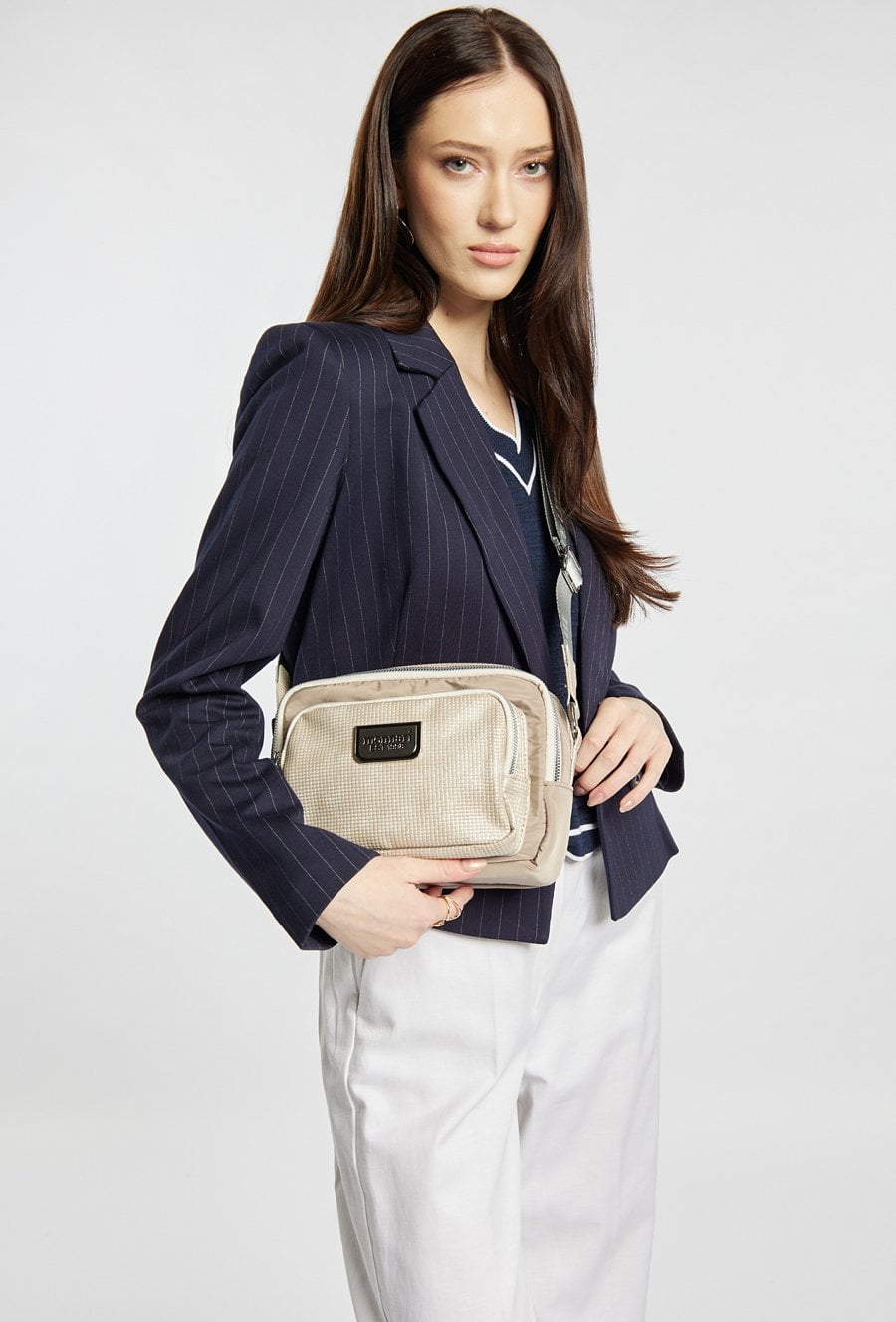 Torba damska z dwoma komorami, wykończona jasną podszewką z logo marki. Zapinana na suwak, zapewnia wygodę i bezpieczeństwo. Regulowany pasek pozwala dopasować ją do swoich potrzeb. Przód zdobi ciekawy ozdobny wzór, który dodaje jej oryginalnego charakteru. Idealna na co dzień i na wyjątkowe okazje! Wymiary: 23,5 cm x 17,5 cm x 16 cm.