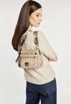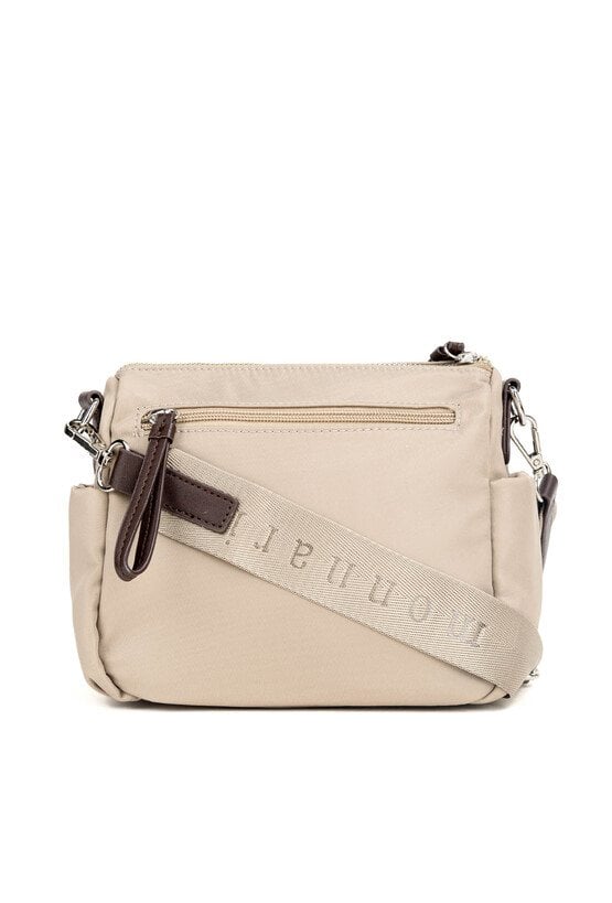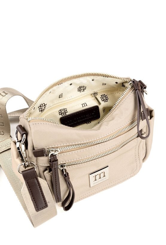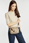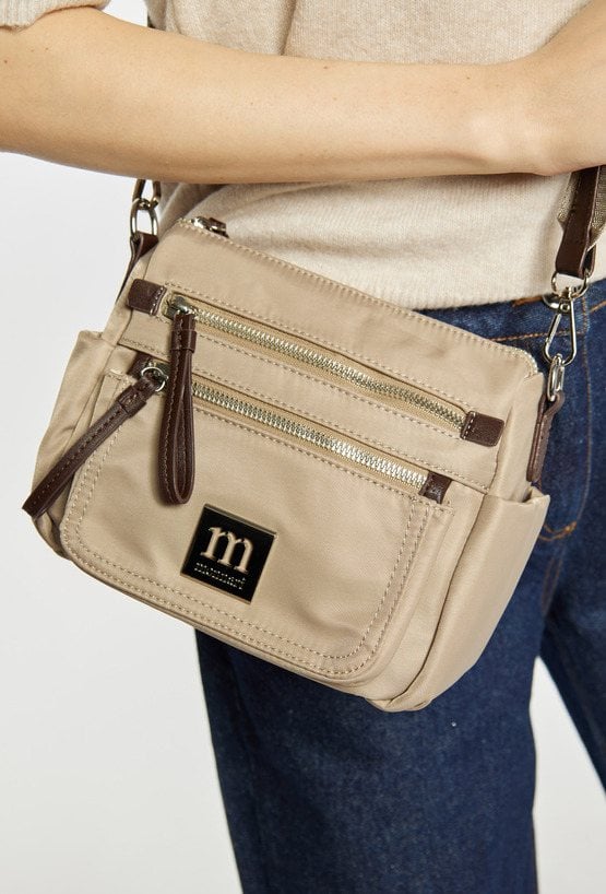 Mała torebka damska z praktycznymi kieszonkami. Model jednokomorowy, z jasną, logowaną podszewką, zawieszony na odpinanym, regulowanym pasku. Stylowa i funkcjonalna – idealna jako elegancki dodatek na co dzień. Torbę należy przechowywać w dołączonym woreczku