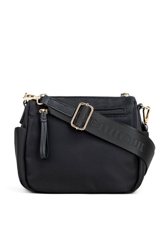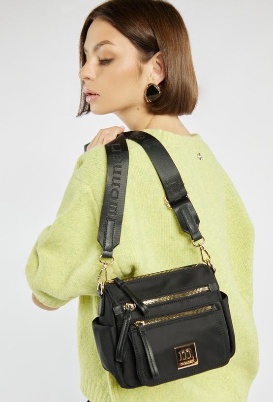 Mała torebka damska z praktycznymi kieszonkami. Model jednokomorowy, z jasną, logowaną podszewką, zawieszony na odpinanym, regulowanym pasku. Stylowa i funkcjonalna – idealna jako elegancki dodatek na co dzień. Torbę należy przechowywać w dołączonym woreczku