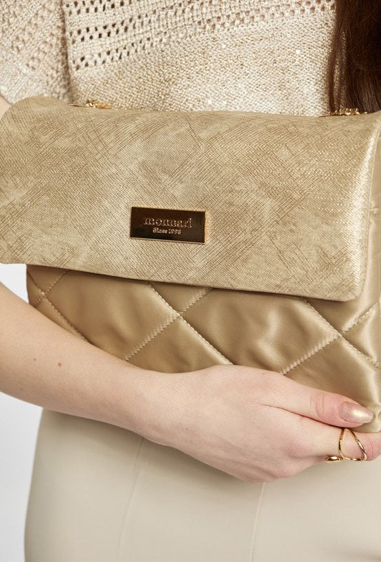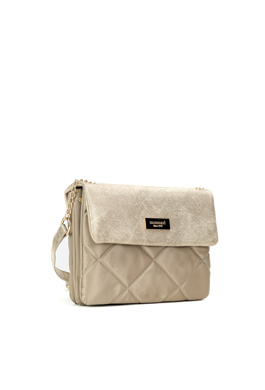 Pikowana torebka, trzykomorowa, z jasną podszewką ozdobioną logo. Zapinana na klips i suwak, zapewnia łatwy dostęp i bezpieczeństwo. Wyposażona w liczne kieszonki, które pomagają w organizacji. Dodatkowo posiada regulowany pasek, co umożliwia dopasowanie do indywidualnych potrzeb. Neutralna, pojemna i elegancka – idealna na co dzień. Wymiary: 27 cm x 21 cm x 8 cm.