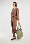 Shopper damski o wymiarach 46,5 cm x 35,5 cm x 13 cm. Torba jednokomorowa, bez dodatkowych kieszonek, zawieszona na wygodnych rączkach, co zapewnia komfort noszenia. Idealna na co dzień – pojemna, stylowa i praktyczna.
