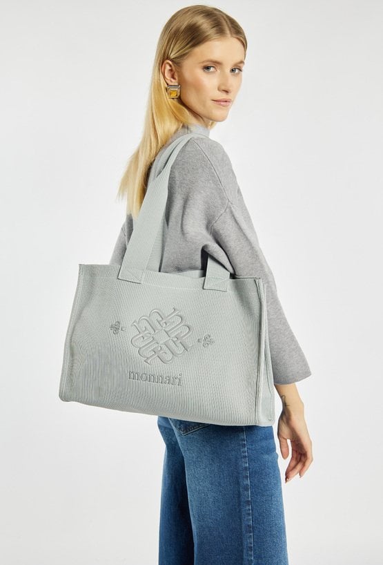 Torba damska typu shopper wykonana ze strukturalnego materiału. Model jednokomorowy, bez dodatkowych kieszonek, wygodnie zawieszony na stylowych rączkach. Z przodu torby umieszczono ozdobne logo marki Monnari, które dodaje jej elegancji i podkreśla markowy charakter. Wymiary: 39,5 cm x 28 cm x 13,5 cm