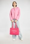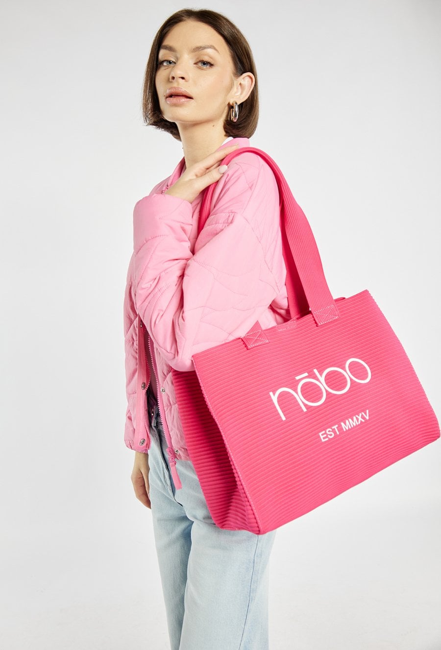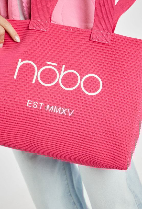 Shopper damski o wymiarach 40 cm x 27 cm x 16 cm. Torba o jednokomorowej konstrukcji zapinanej na napę, zawieszona na rączkach. Z przodu znajduje się logo marki NOBO, które dodaje całości eleganckiego charakteru.
