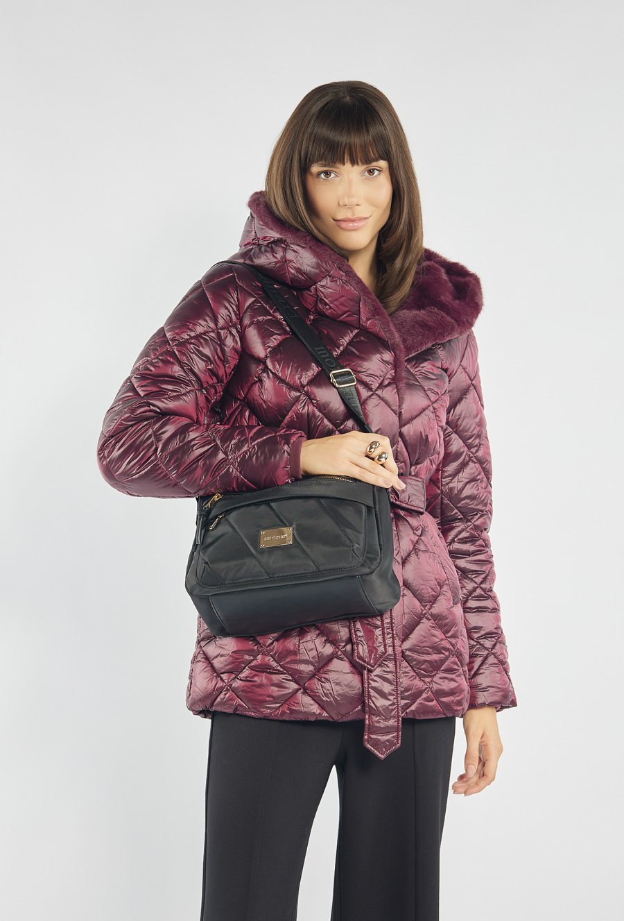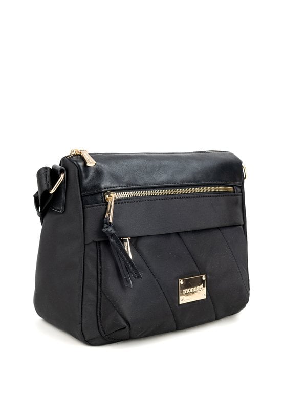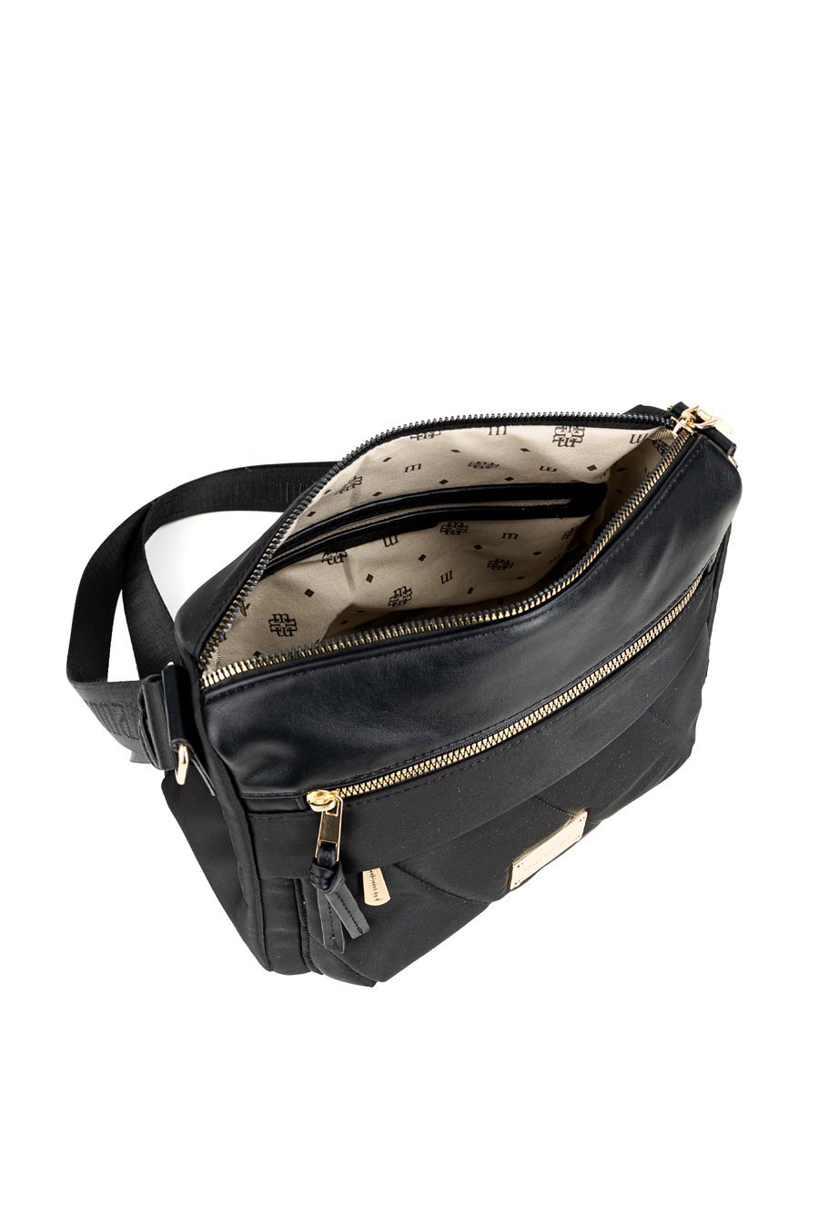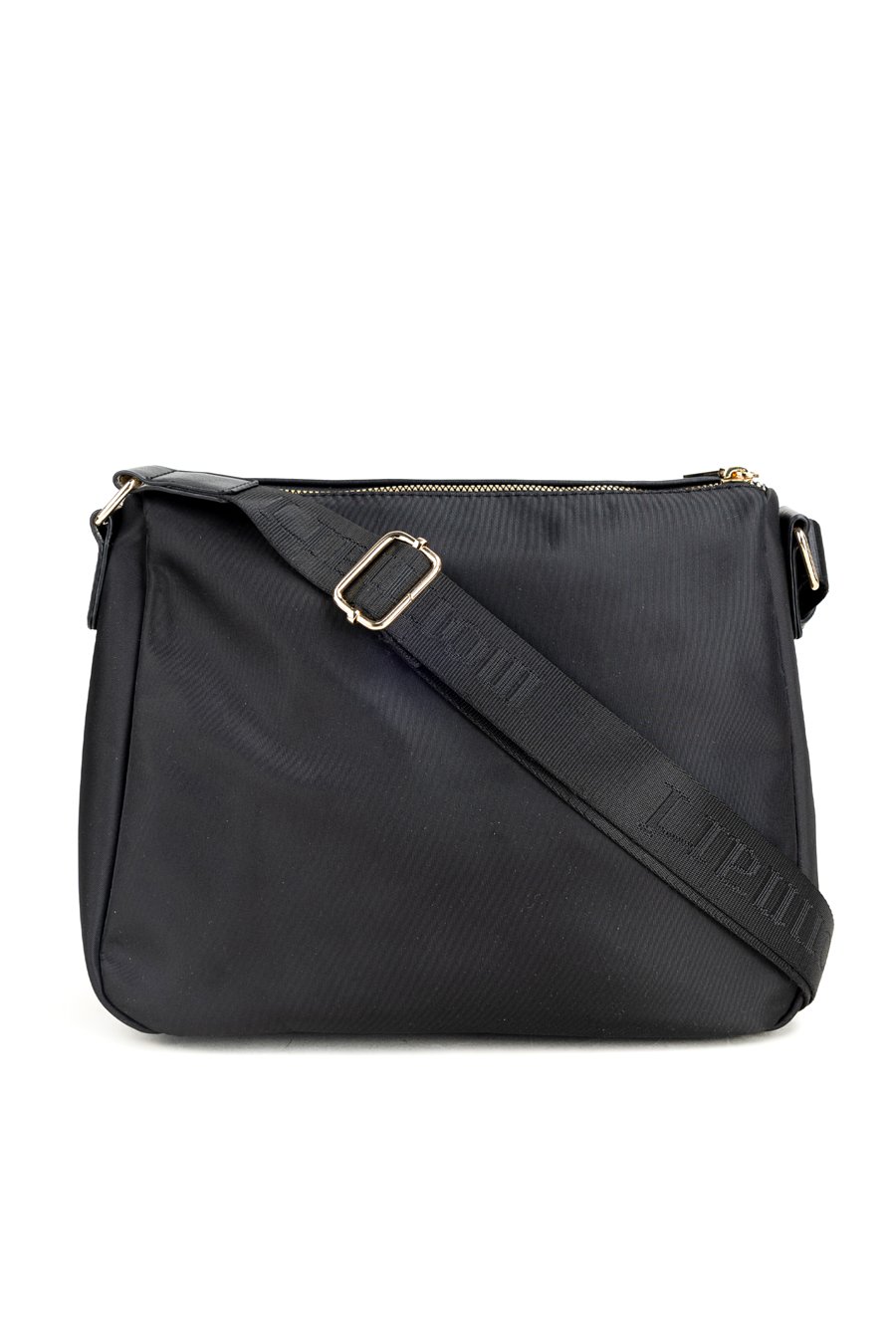 Stylowa tekstylna torba damska, zawieszona na praktycznym, regulowanym pasku. Jednokomorowe wnętrze zostało wykończone jasną, logowaną podszewką i wzbogacone o dodatkowe kieszonki zarówno wewnątrz, jak i na zewnątrz. Dzięki wymiarom 28,5 cm x 23 cm x 10 cm świetnie sprawdzi się jako codzienna towarzyszka miejskich stylizacji. Torbę należy przechowywać w dołączonym woreczku.