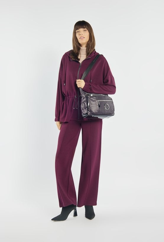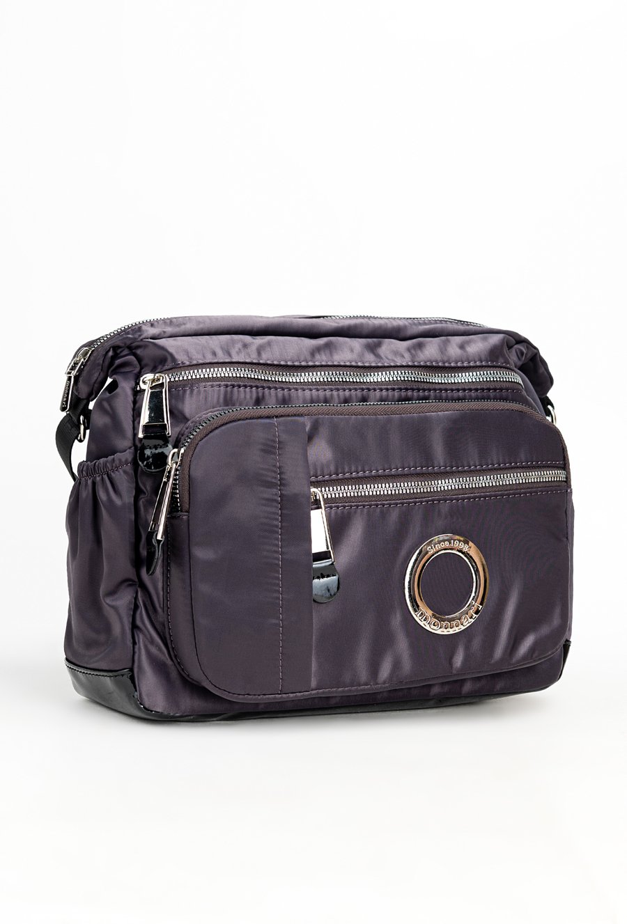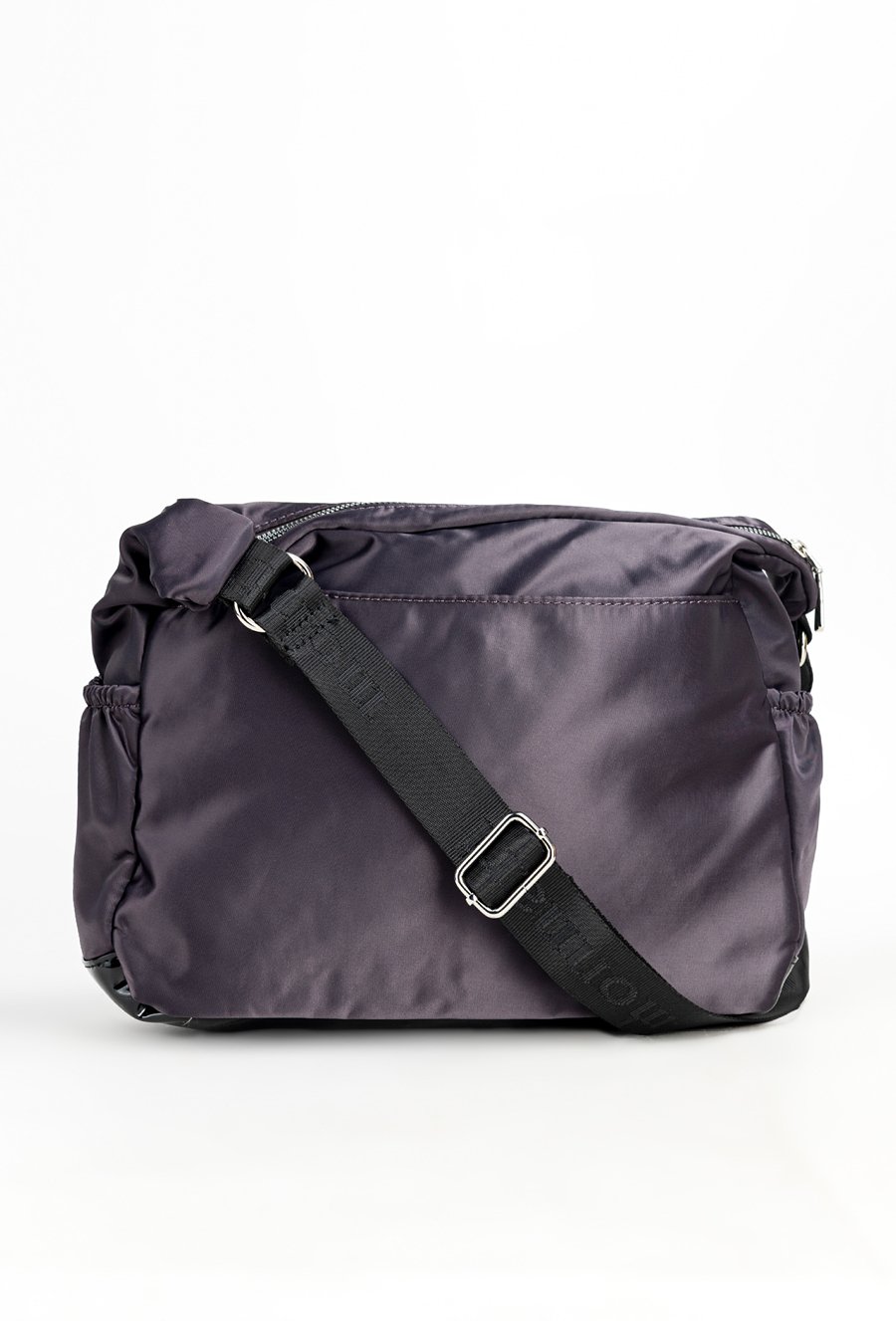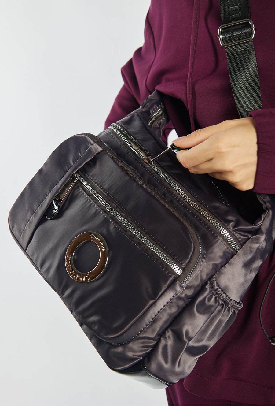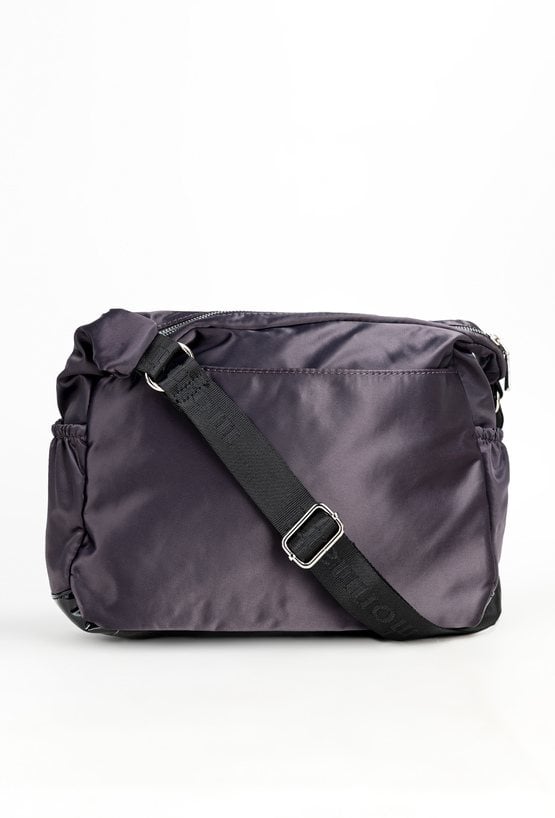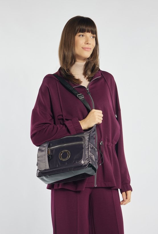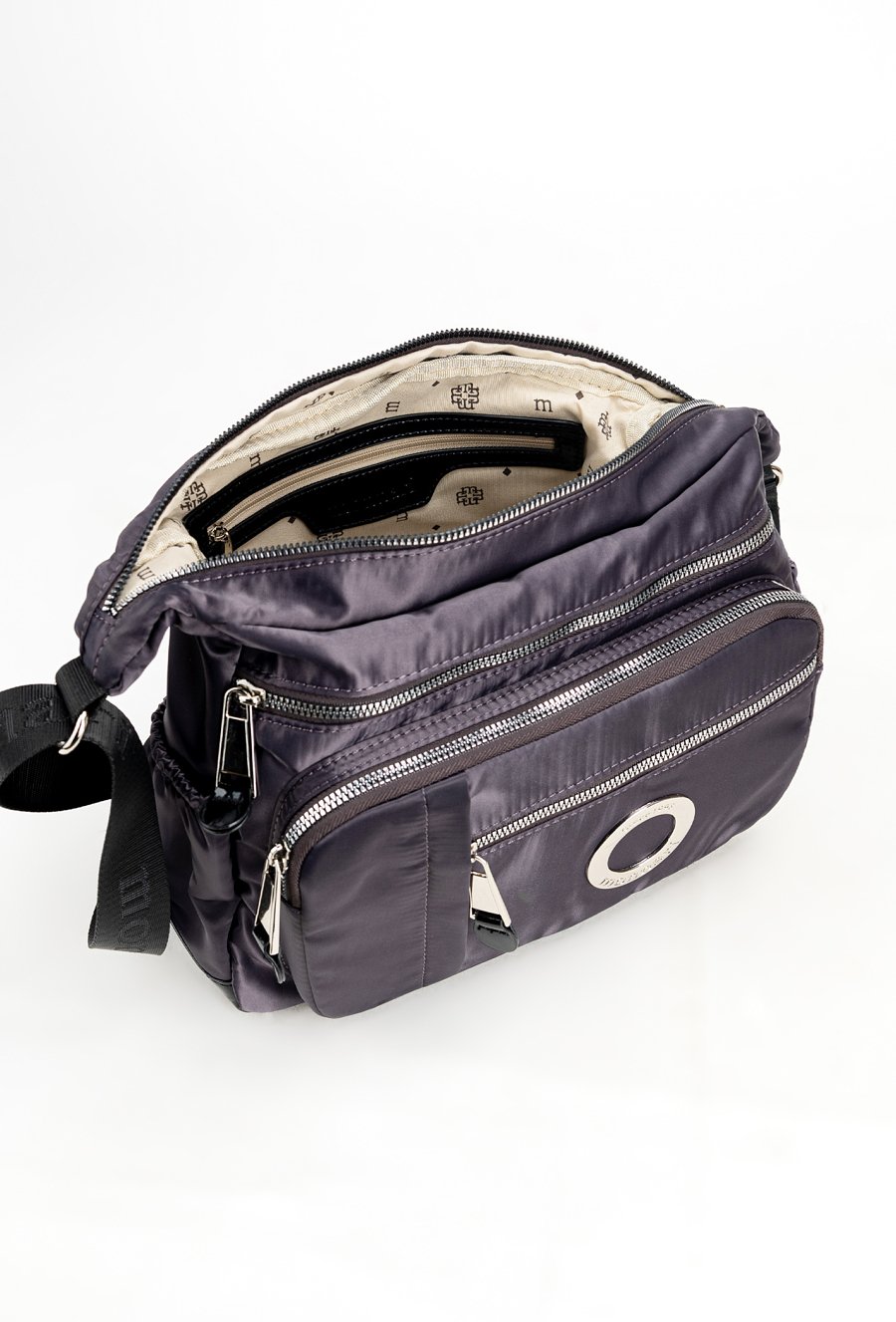 Lekka i praktyczna torebka wykonana z tekstylnego materiału. Model jednokomorowy, wykończony jasną, logowaną podszewką z dodatkową kieszonką w środku. Z przodu umieszczono trzy funkcjonalne kieszenie, natomiast z tyłu- jedną kieszeń zapinaną na napę. Torba zawieszona na regulowanym pasku. Wymiary: 28 × 23 × 16 cm. Idealna do codziennych stylizacji. Torbę należy przechowywać w dołączonym woreczku.