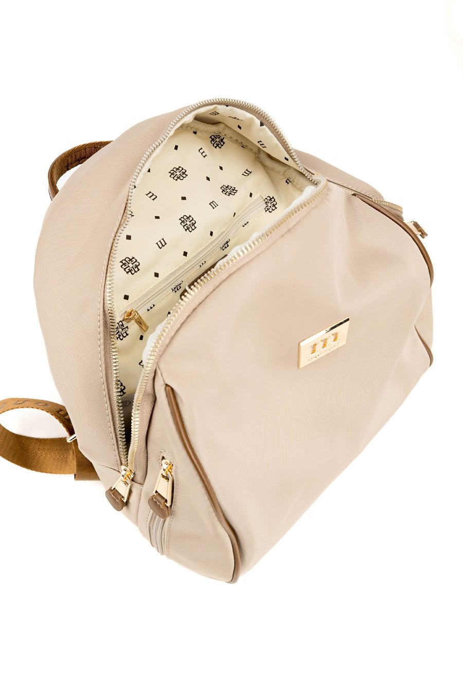 Gładki plecak damski z biżuteryjnym logo marki Monnari z przodu. Model jednokomorowy, z jasną, logowaną podszewką oraz dodatkowymi kieszonkami na drobiazgi. Zawieszony na rączce i regulowanych paskach, łączy w sobie elegancję i funkcjonalność, sprawdzając się doskonale na co dzień. Należy przechowywać w dołączonym woreczku. Wymiary: 29 cm x 32 cm x 15 cm.