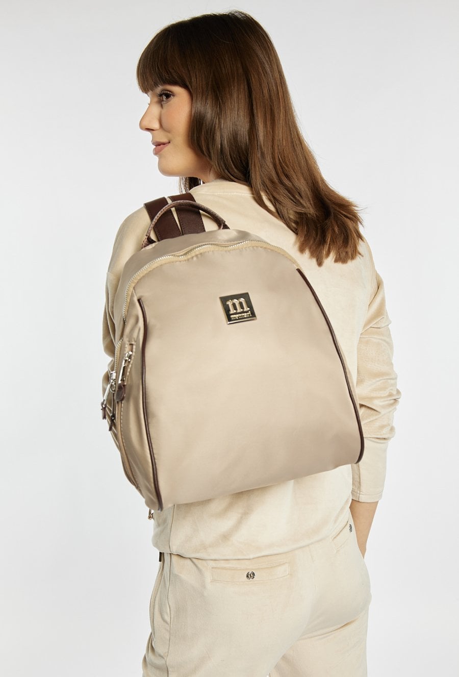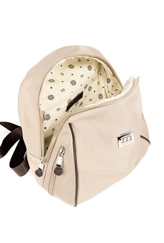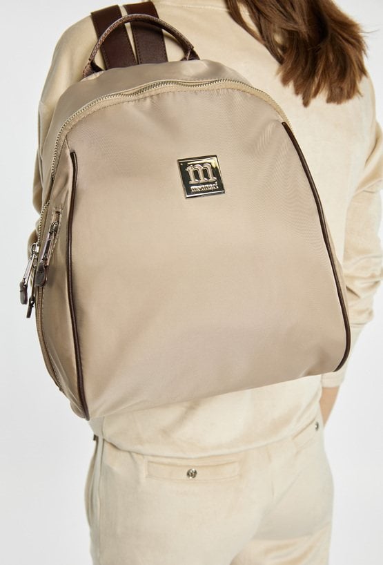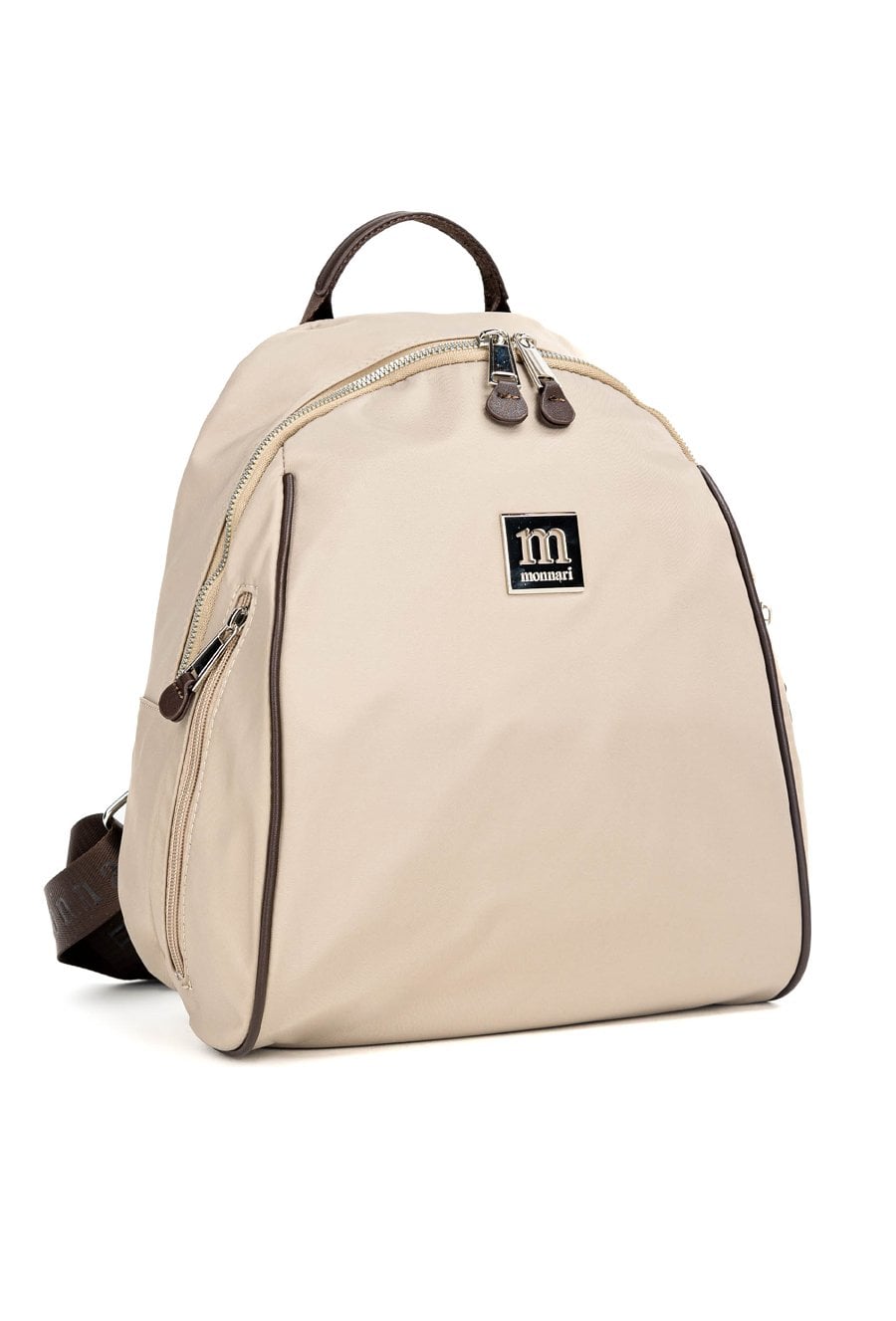 Gładki plecak damski z biżuteryjnym logo marki Monnari z przodu. Model jednokomorowy, z jasną, logowaną podszewką oraz dodatkowymi kieszonkami na drobiazgi. Zawieszony na rączce i regulowanych paskach, łączy w sobie elegancję i funkcjonalność, sprawdzając się doskonale na co dzień. Należy przechowywać w dołączonym woreczku. Wymiary: 29 cm x 32 cm x 15 cm.