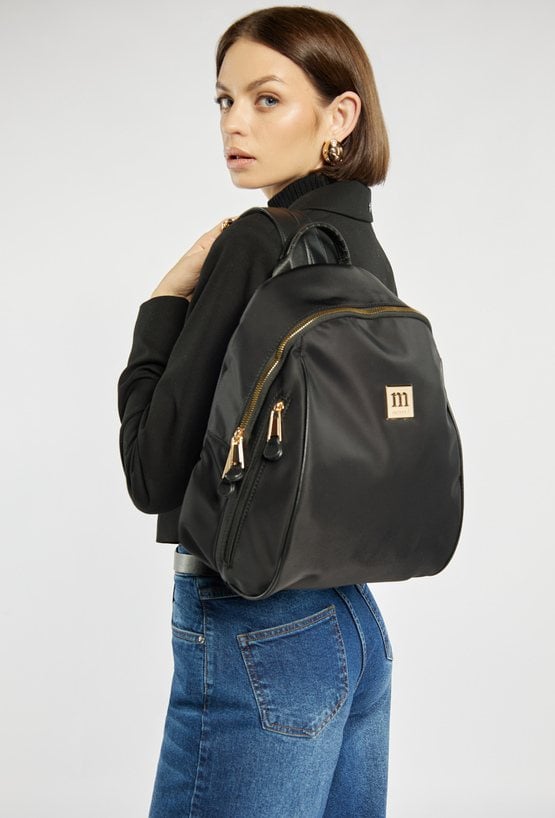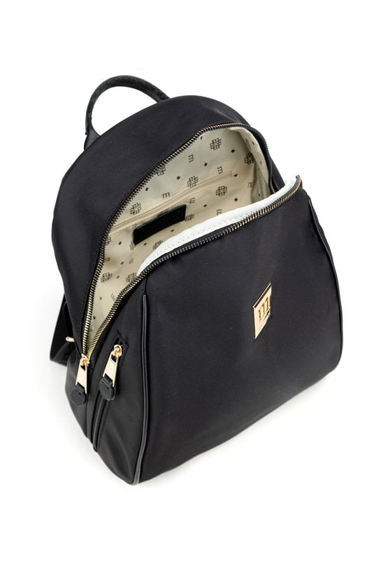 Gładki plecak damski z biżuteryjnym logo marki Monnari z przodu. Model jednokomorowy, z jasną, logowaną podszewką oraz dodatkowymi kieszonkami na drobiazgi. Zawieszony na rączce i regulowanych paskach, łączy w sobie elegancję i funkcjonalność, sprawdzając się doskonale na co dzień. Należy przechowywać w dołączonym woreczku. Wymiary: 29 cm x 32 cm x 15 cm.