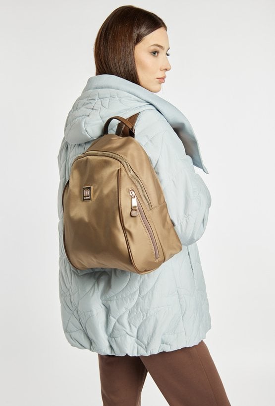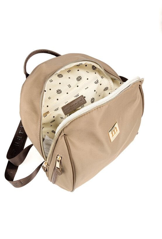 Gładki plecak damski z biżuteryjnym logo marki Monnari z przodu. Model jednokomorowy, z jasną, logowaną podszewką oraz dodatkowymi kieszonkami na drobiazgi. Zawieszony na rączce i regulowanych paskach, łączy w sobie elegancję i funkcjonalność, sprawdzając się doskonale na co dzień. Należy przechowywać w dołączonym woreczku. Wymiary: 29 cm x 32 cm x 15 cm.