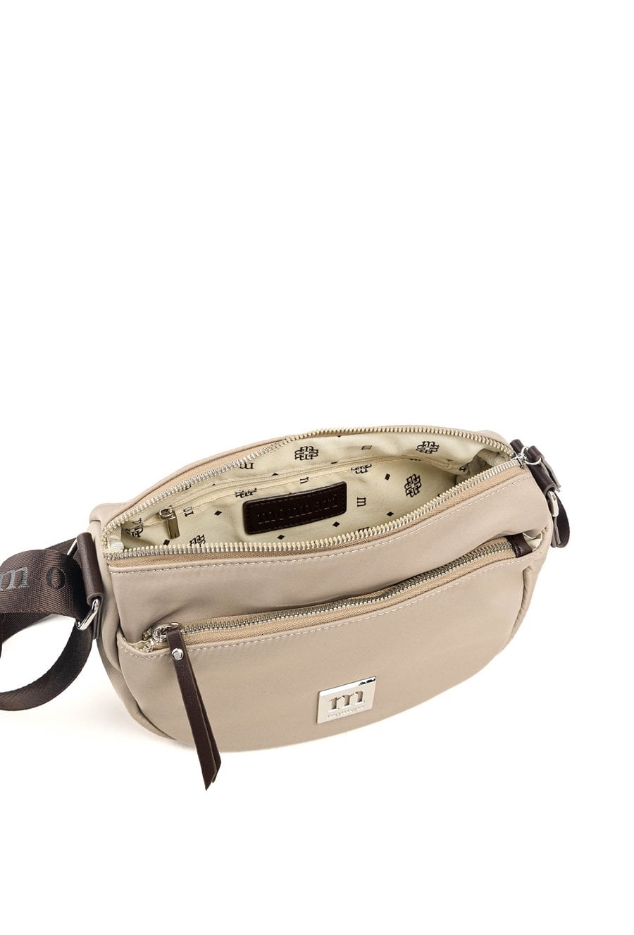 Torba crossbody o wymiarach 27 cm x 18 cm x 8 cm. Model jednokomorowy, z jasną, logowaną podszewką oraz dodatkowymi kieszonkami wewnątrz i dwiema kieszeniami zewnętrznymi. Zawieszona na regulowanym pasku, jest idealna na co dzień – praktyczna, stylowa i wygodna w noszeniu. Torbę należy przechowywać w dołączonym woreczku
