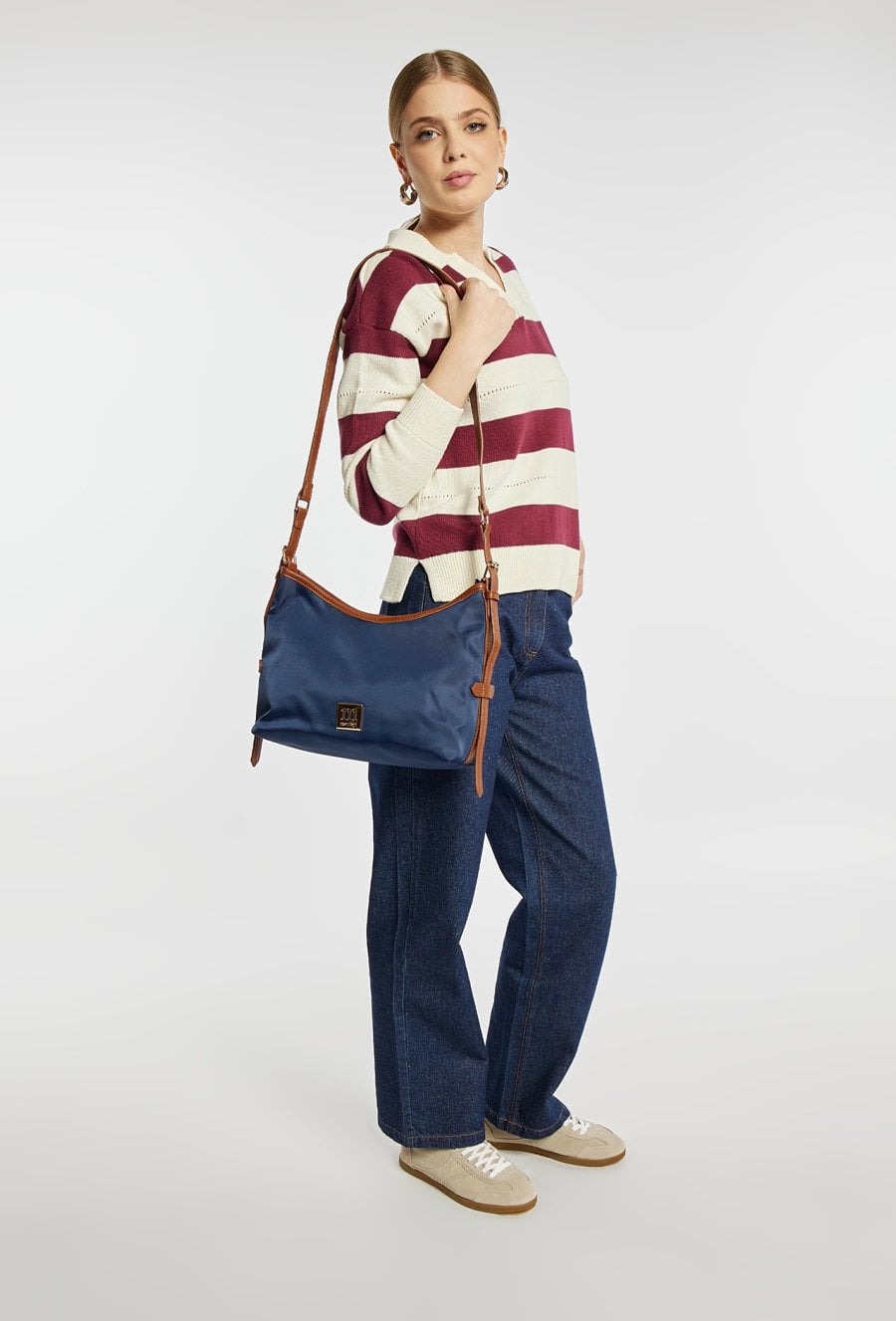 Torba damska o wymiarach 34 × 19,5 × 10 cm to idealny wybór na co dzień. Torba charakteryzuje się jednokomorowym wnętrzem wykończonym jasną, logowaną podszewką. W środku znajdują się dodatkowe kieszonki, które ułatwiają organizację drobiazgów. Model ten zapinany jest na regulowanej rączce/pasku, pozwalając dopasować sposób noszenia do własnych potrzeb. Torbę należy przechowywać w dołączonym woreczku.