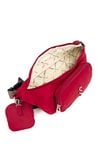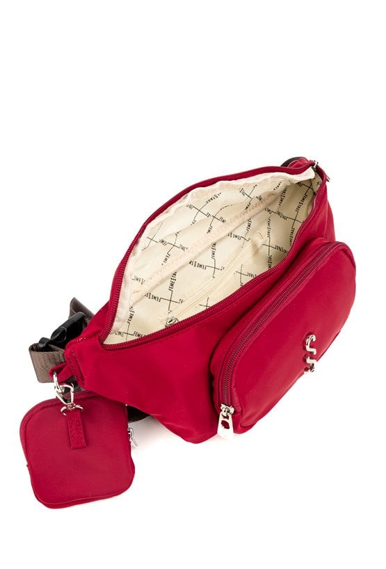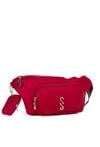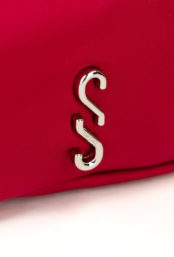 Torba tekstylna damska typu nerka o wymiarach 33 × 16 × 5 cm, jednokomorowa, z jasną, logowaną podszewką oraz praktyczną kieszonką z przodu. Torba noszona na regulowanym pasku, uzupełniona o małą saszetkę jako dodatkowy atut. Torbę należy przechowywać w załączonym woreczku.