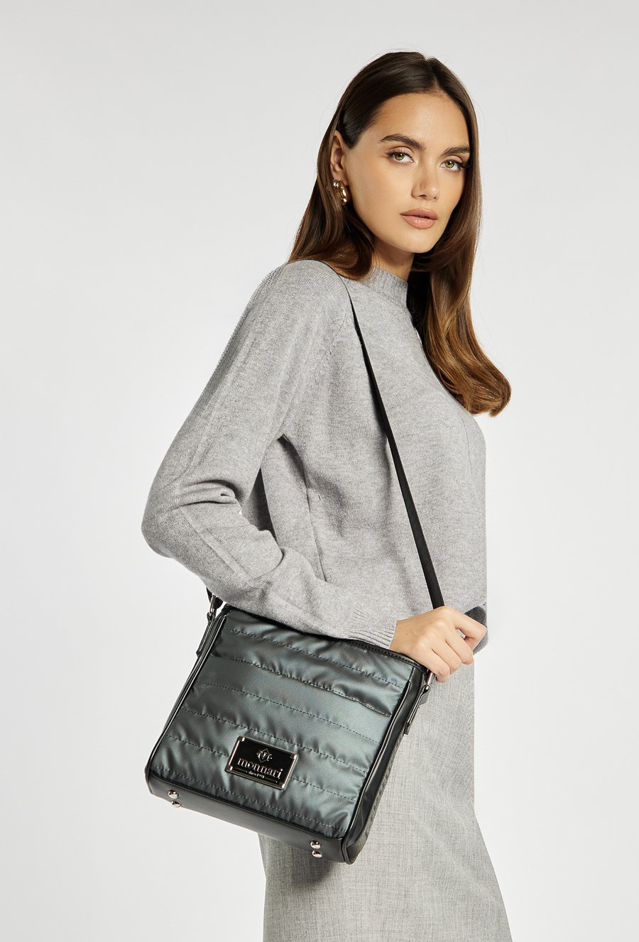 Torba damska z poziomym pikowaniem. Torba jednokomorowa o jasnej, logowanej podszewce z dodatkowymi kieszonkami na drobiazgi. Z przodu znajduje się dyskretna kieszonka zapinana na napę – idealna na drobiazgi. Torbę należy przechowywać w dołączonym woreczku. Wymiary: 28 cm x 24 cm x 9 cm
