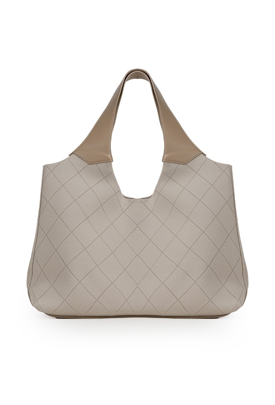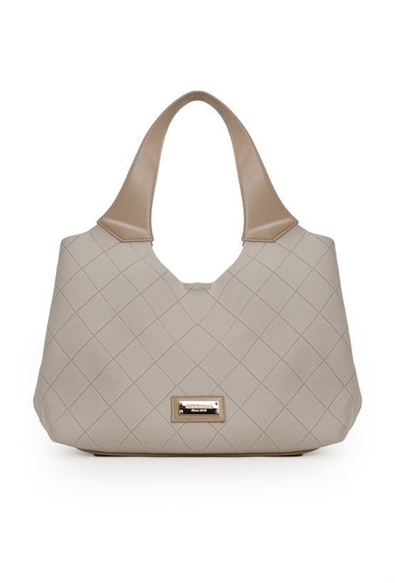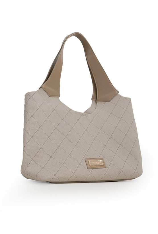 Torba damska o wymiarach 44 × 25 × 13 cm. Jednokomorowy model zapinany na napę, zawieszony na rączkach. Pojemna i wygodna, idealnie sprawdzi się na co dzień oraz do pracy. Torbę należy przechowywać w dołączonym woreczku.