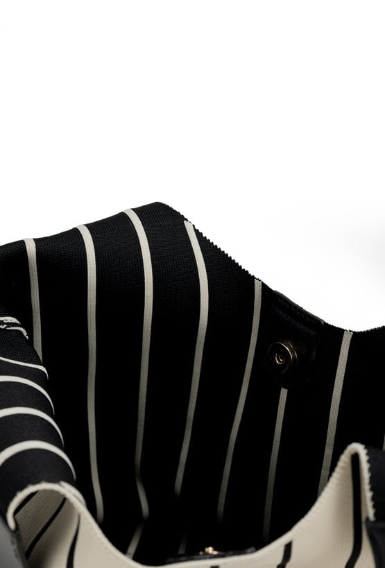 Torba damska o wymiarach 44 × 25 × 13 cm. Jednokomorowy model zapinany na napę, zawieszony na rączkach. Pojemna i wygodna, idealnie sprawdzi się na co dzień oraz do pracy. Torbę należy przechowywać w dołączonym woreczku.