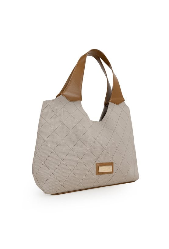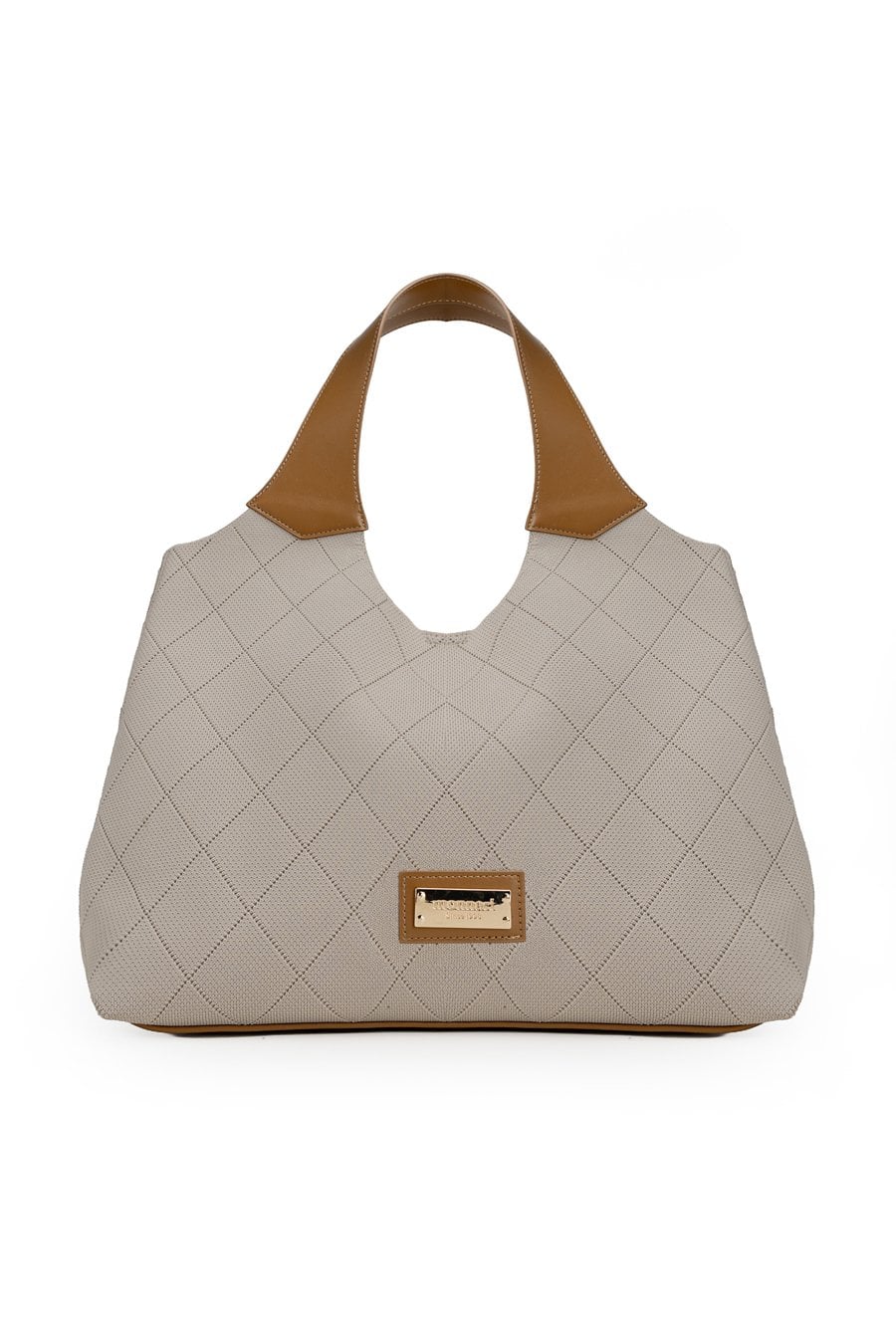 Torba damska o wymiarach 44 × 25 × 13 cm. Jednokomorowy model zapinany na napę, zawieszony na rączkach. Pojemna i wygodna, idealnie sprawdzi się na co dzień oraz do pracy. Torbę należy przechowywać w dołączonym woreczku.