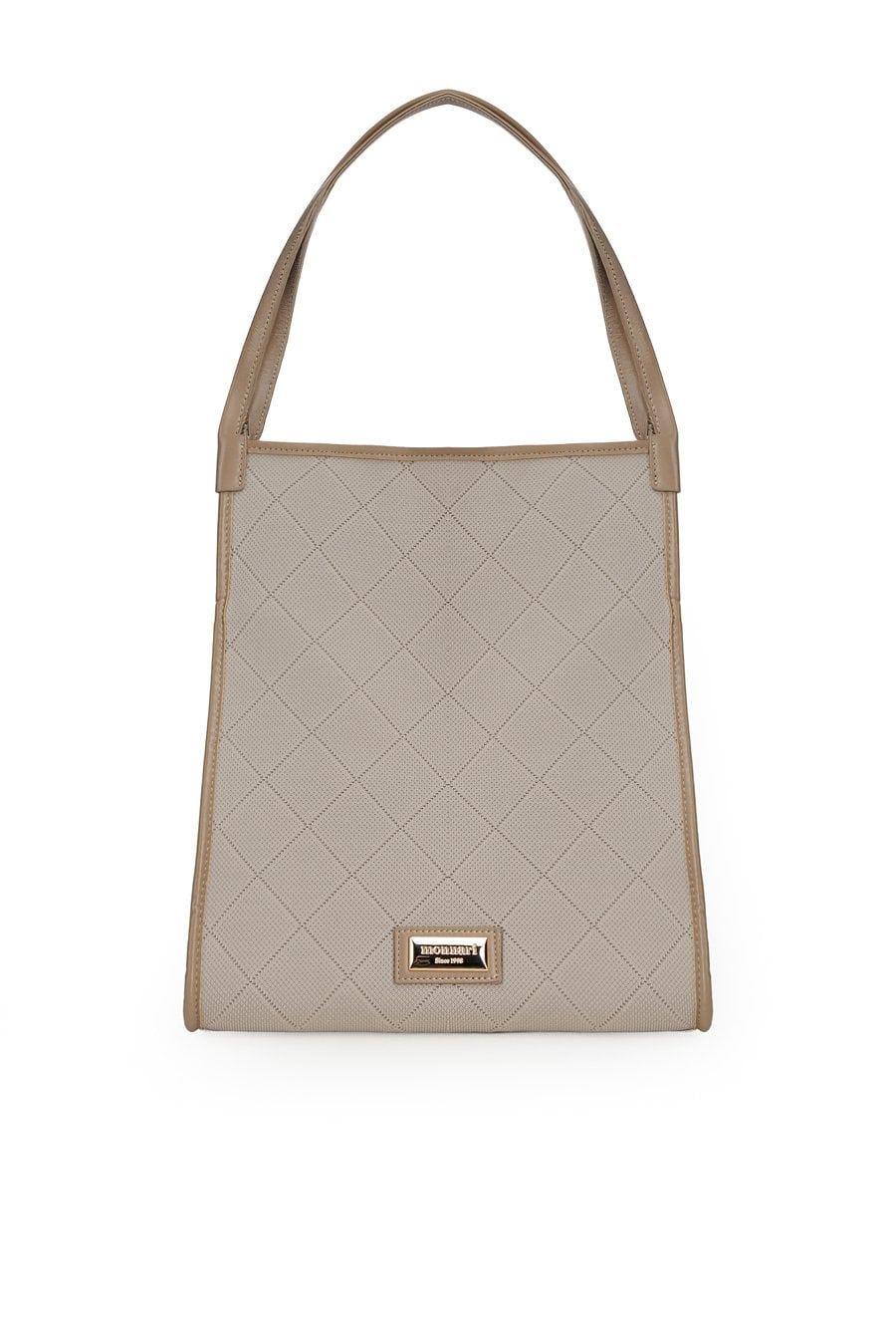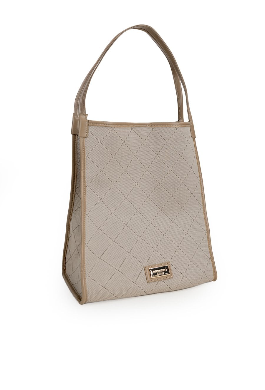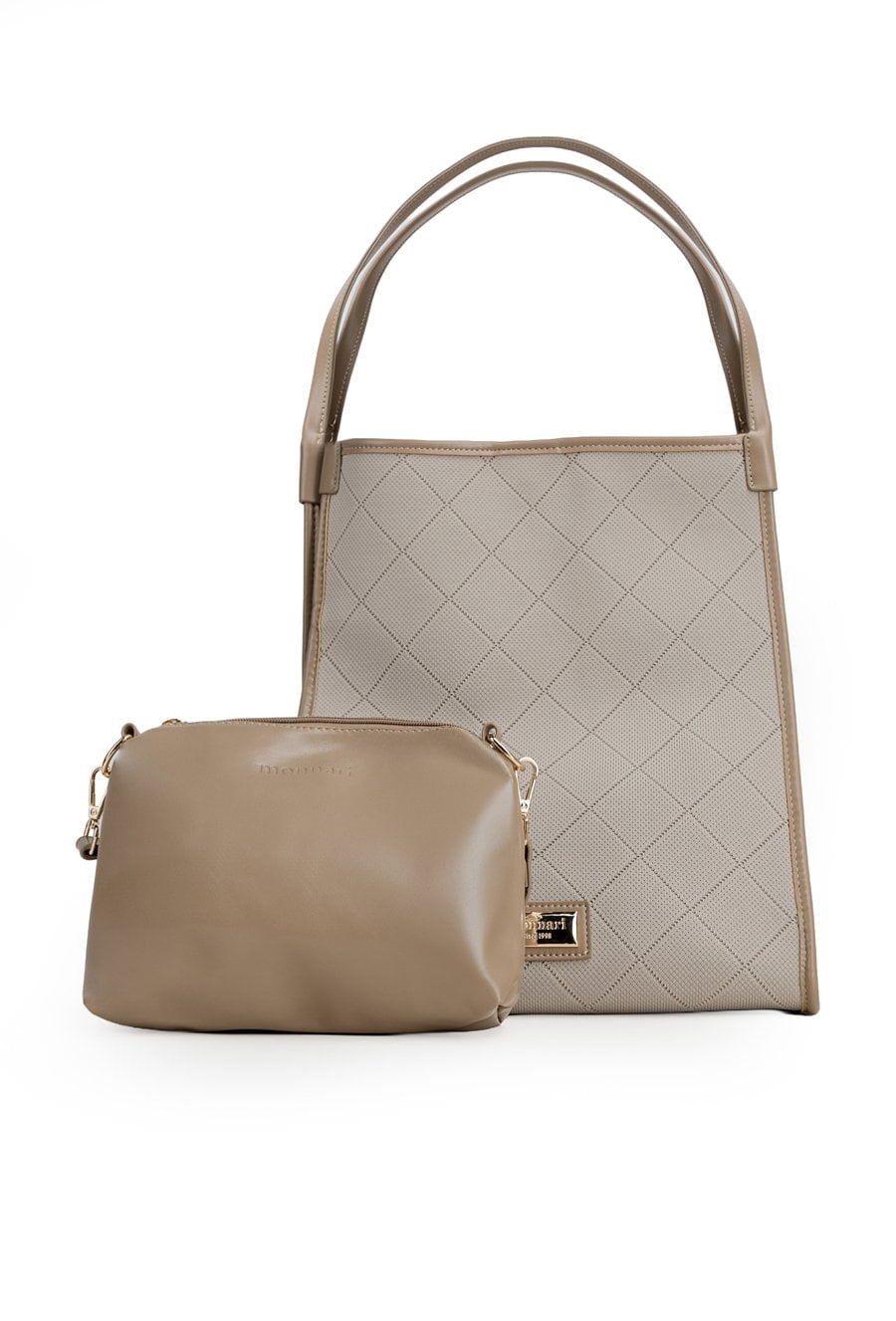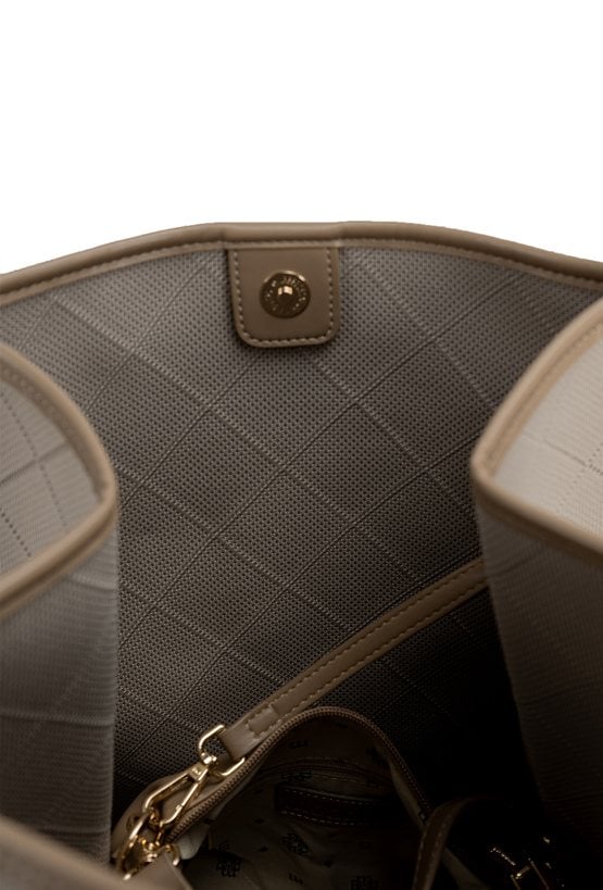 Torba damska o wymiarach 30 × 36,5 × 21,5 cm. Jednokomorowy model zapinany na napę, zawieszony na rączkach. Atutem jest mała torebka wewnątrz z odpinanym paskiem. Torbę należy przechowywać w dołączonym woreczku.