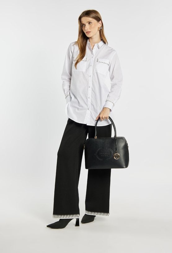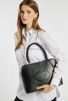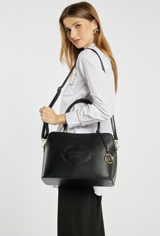Pojemna torba damska o wymiarach: 37,5 cm x 25 cm x 10,5 cm. Torba jednokomorowa o jasnej logowanej podszewce z dodatkowymi kieszonkami na drobiazgi. Torba zawieszona na wygodnych rączkach, a w zestawie znajduje się regulowany pasek. Całość zdobi efektowna zawieszka z logo marki Monnari oraz subtelnie wyryte logo z przodu, dodające całości nowoczesnego charakteru.