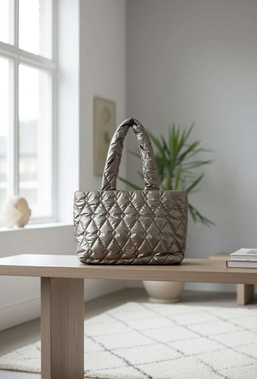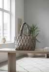 Duża, pikowana torba tekstylna to stylowy i uniwersalny dodatek na każdą okazję. Jednokomorowa, zapinana na suwak, łączy w sobie modny wygląd i praktyczne rozwiązania. Można ją wygodnie nosić na ramieniu, a jej ponadczasowy design doskonale komponuje się z wieloma stylizacjami od codziennych po bardziej wyjściowe. Wymiary: 47 cm x 30 cm 14 cm. Torbę należy przechowywać w dołączonym woreczku.
