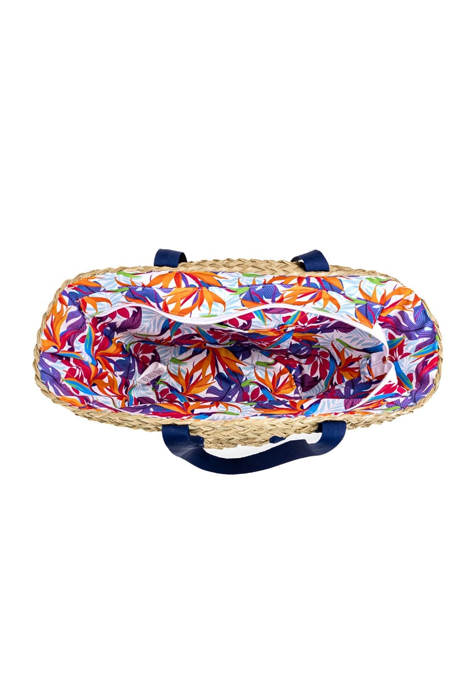 Gdy tylko musimy sobie wyobrazić idealną torbę plażową, od razu mamy przed oczami ten model. Dużych rozmiarów pleciony koszyk na ramię NOBO z parcianą taśmą sprawdzi się doskonale nie tylko podczas urlopu. Niezależnie od tego, czy planujesz wrzucić do niej książkę na plażę, czy plik dokumentów potrzebnych w pracy, to będzie bardzo dobra propozycja. Nasze klientki pokochały tę torbę przede wszystkim za jej uniwersalność – świetnie wygląda także do miejskich stylizacji podczas najgorętszych miesięcy w roku. Mieszcząca format A4 komora główna wyposażona jest w zapięcie na zamek błyskawiczny. Uwagę zdecydowanie zwraca także wykonana z tkaniny poliestrowej kolorowa podszewka z nadrukiem w egzotyczne kwiaty, która nadaje torbie wyjątkowego charakteru. Połączenie plecionego naturalnie prezentującego się materiału oraz klasycznej czerni uchwytów zdecydowanie robi wrażenie. Wymiary: 51 cm x 29 cm x 18 cm