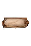 Logowana listonoszka Nobo to model, który zawsze będzie się prezentował wyjątkowo. Została wykonana z wysokiej jakości, lekko groszkowanej skóry ekologicznej. Sztywna konstrukcja, beżowy, zamszowy materiał z wytłoczonym monogramem w połączeniu z karmelowym tworzywem oraz stylowe okucia w kolorze jasnego złota to ponadczasowa klasyka. Model jest mały (nie mieści format A5), jednokomorowy zamykany na suwak. Ponadto we wnętrzu znajdziesz 2 mniejsze kieszonki, w tym jedną zamykaną. Wnętrze wyścielane jest beżową, logowaną tkaniną poliestrową. Jeśli szukasz w dodatkach klasykę, ale z niebanalnym designem, to właśnie propozycja idealna dla Ciebie. Wymiary: 26 cm x 17,5 cm 7 cm
