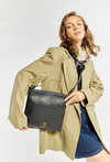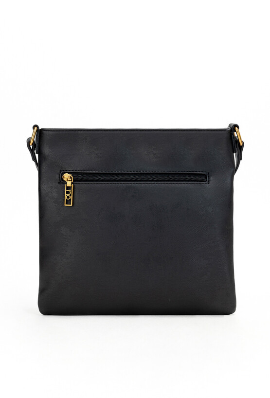 Uniwersalna listonoszka Nobo w stylu vintage to model, który zawsze będzie się prezentował szykownie. Została wykonana z wysokiej jakości, lekko przecieranej skóry ekologicznej. Prosta forma w minimalistycznym stylu oraz okucia w kolorze starego złota będą pasować do wielu stylizacji. Listonoszka jest średnich rozmiarów (mieści format A5). Na zewnątrz zostały umieszczone 2 praktyczne kieszonki w tym jedna na tyle zapinana na suwak zaś w środku torby jest mniejsza kieszonka przeznaczone na drobiazgi. Listonoszka w klasycznym czarnym kolorze to dodatek, który sprawdzi się na co dzień.