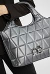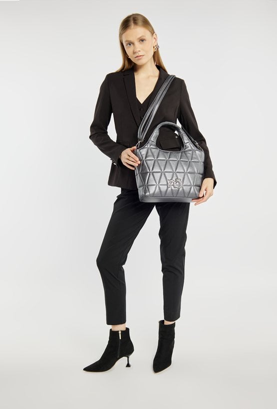 Torba damska typu shopper o wymiarach: 35 cm x 23 cm x 11 cm. Torba jednokomorowa o jasnej logowanej podszewce z dodatkowymi kieszonkami na drobiazgi. Torba z ciekawym pikowaniem zawieszona na rączkach a w zestawie ma regulowany pasek. Torbę należy przechowywać w dołączonym woreczku.