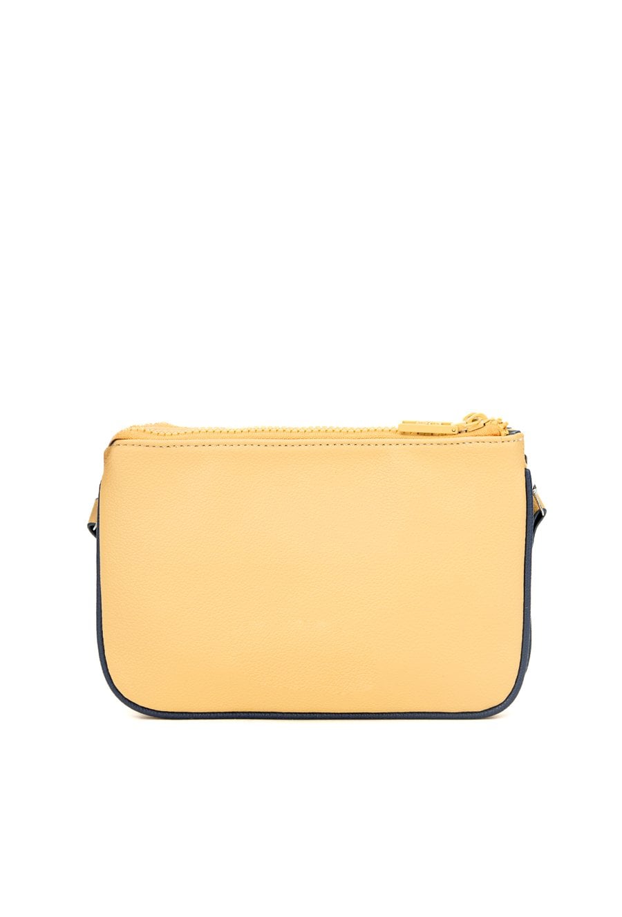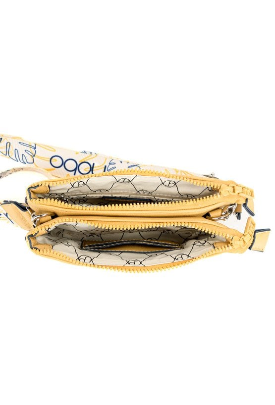 Dwukomorowa torba typu crossbody z haftowanym, małym logo marki NOBO. Wnętrze wykończone jasną, logowaną podszewką z dodatkowymi kieszonkami na drobiazgi. Torba zawieszona na wzorzystym, regulowanym pasku. Torbę należy przechowywać w dołączonym woreczku. Wymiary: 22 cm x 14,5 cm x 3 cm.