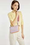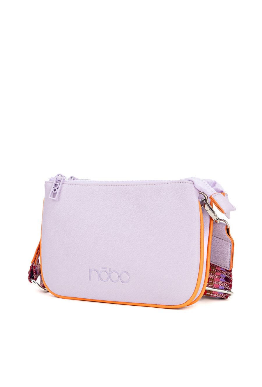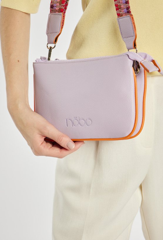 Dwukomorowa torba typu crossbody z haftowanym, małym logo marki NOBO. Wnętrze wykończone jasną, logowaną podszewką z dodatkowymi kieszonkami na drobiazgi. Torba zawieszona na wzorzystym, regulowanym pasku. Torbę należy przechowywać w dołączonym woreczku. Wymiary: 22 cm x 14,5 cm x 3 cm.