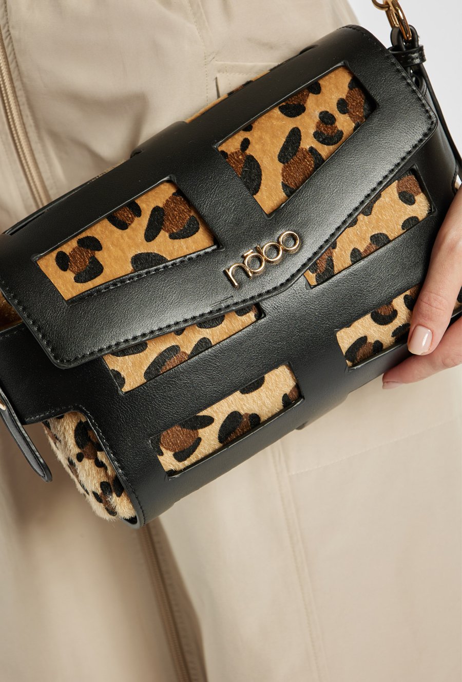 Torebka damska typu crossbody z ozdobnymi pasami tworzącymi wyrazisty, modowy akcent. Torba jednokomorowa z jasną, logowaną podszewką i dodatkowymi kieszonkami na drobiazgi. Torba zawieszona na regulowanym pasku, wygodna do noszenia na co dzień. Torbę należy przechowywać w dołączonym woreczku. Wymiary: 24 × 19 × 10 cm