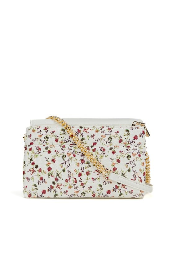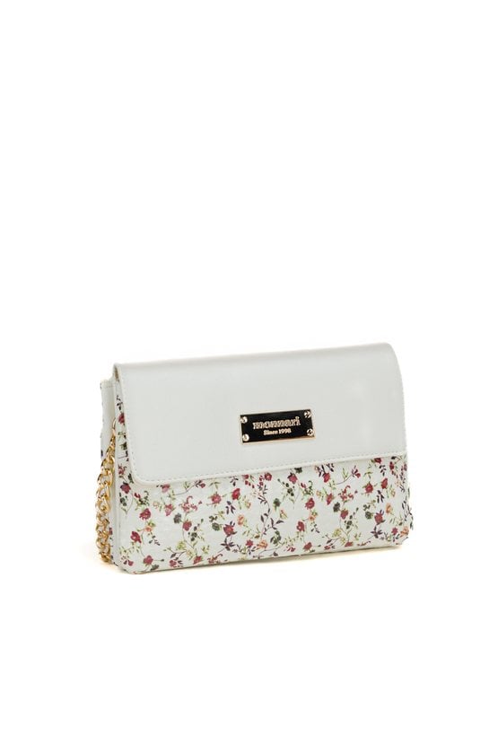Mała torebka damska z wzorem o wymiarach 22 × 14 × 2 cm to idealny model na telefon i najpotrzebniejsze drobiazgi. Torba ma klapę oraz jasne, logowane wnętrze, a z tyłu znajduje się praktyczna kieszonka zapinana na suwak. Torba zawieszona na regulowanym pasku z łańcuszkiem. Torbę należy przechowywać w dołączonym woreczku.
