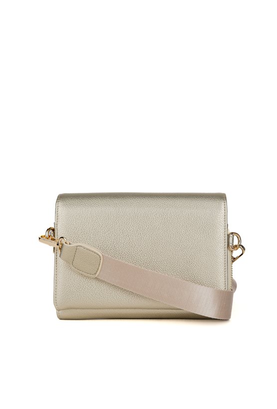 Mała torebka damska o wymiarach 19 cm x 15 cm x 5,5 cm, idealna na telefon. Torba dwukomorowa – jedna zamykana na suwak, druga bez zapięcia, co zapewnia wygodny dostęp do zawartości. Torba z klapą, zawieszona na regulowanym pasku z możliwością odpięcia, dzięki czemu można ją nosić zarówno na ramieniu, jak i w dłoni. Torbę należy przechowywać w załączonym woreczku.