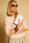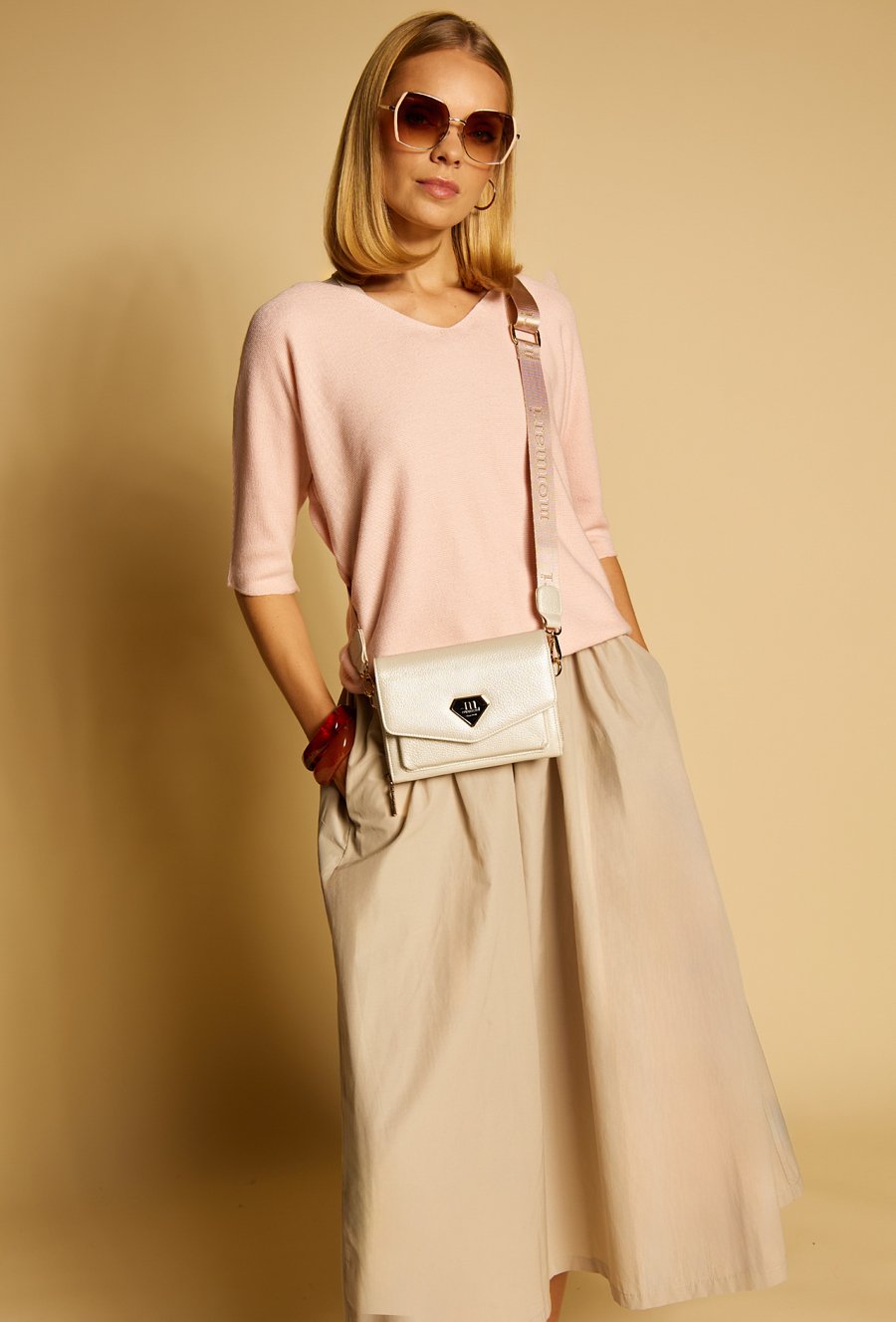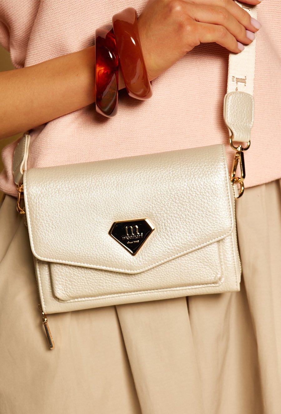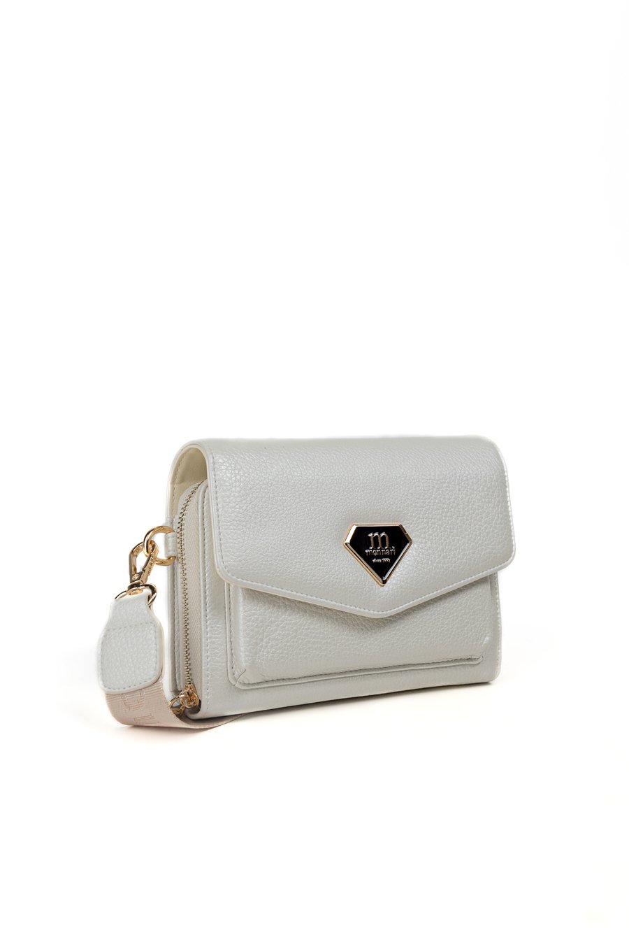 Mała torebka damska o wymiarach 19 cm x 15 cm x 5,5 cm, idealna na telefon. Torba dwukomorowa – jedna zamykana na suwak, druga bez zapięcia, co zapewnia wygodny dostęp do zawartości. Torba z klapą, zawieszona na regulowanym pasku z możliwością odpięcia, dzięki czemu można ją nosić zarówno na ramieniu, jak i w dłoni. Torbę należy przechowywać w załączonym woreczku.