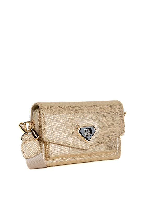 Mała torebka damska o wymiarach 19 cm x 15 cm x 5,5 cm, idealna na telefon. Torba dwukomorowa – jedna zamykana na suwak, druga bez zapięcia, co zapewnia wygodny dostęp do zawartości. Torba z klapą, zawieszona na regulowanym pasku z możliwością odpięcia, dzięki czemu można ją nosić zarówno na ramieniu, jak i w dłoni. Torbę należy przechowywać w załączonym woreczku.