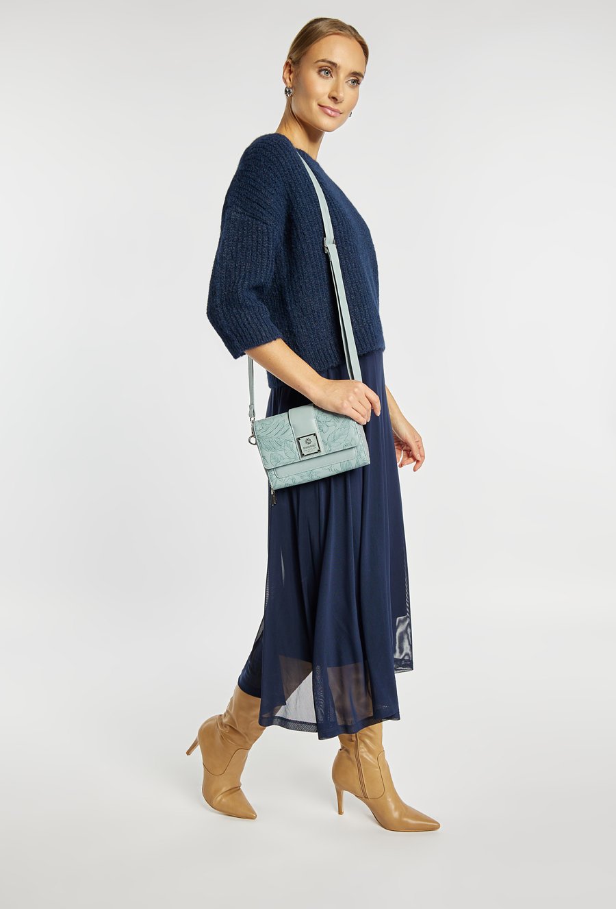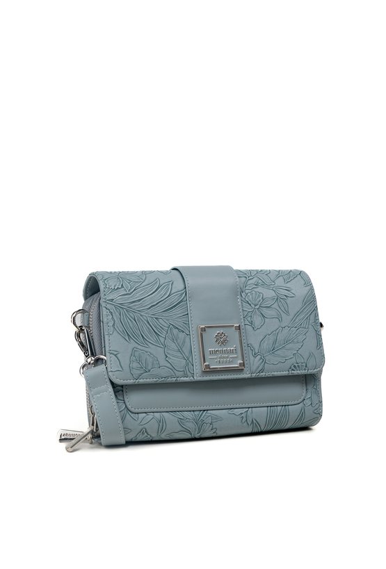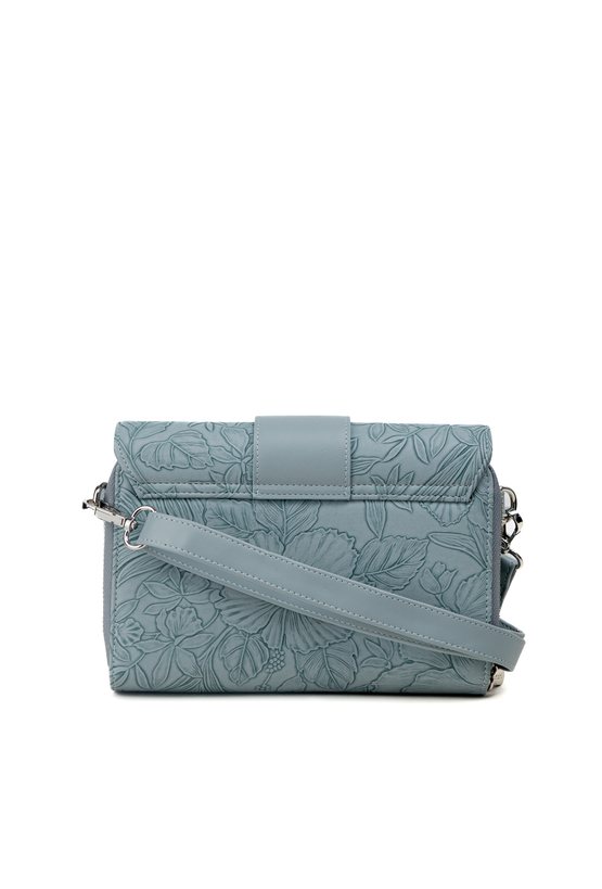 Mała torebka damska o wymiarach 20,5 cm x 15 cm x 4,5 cm, idealna na telefon. Torba dwukomorowa, z jasnymi, logowanymi podszewkami oraz dodatkowymi kieszonkami na drobiazgi. Delikatny roślinny wzór dodaje jej subtelnej elegancji. W zestawie znajduje się odpinany pasek z regulacją. Torbę należy przechowywać w załączonym woreczku ochronnym.