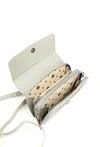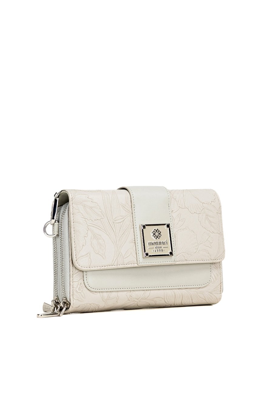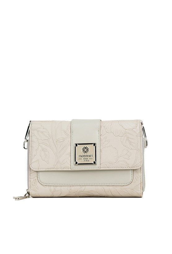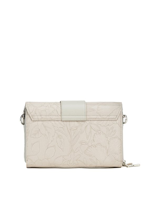 Mała torebka damska o wymiarach 20,5 cm x 15 cm x 4,5 cm, idealna na telefon. Torba dwukomorowa, z jasnymi, logowanymi podszewkami oraz dodatkowymi kieszonkami na drobiazgi. Delikatny roślinny wzór dodaje jej subtelnej elegancji. W zestawie znajduje się odpinany pasek z regulacją. Torbę należy przechowywać w załączonym woreczku ochronnym.