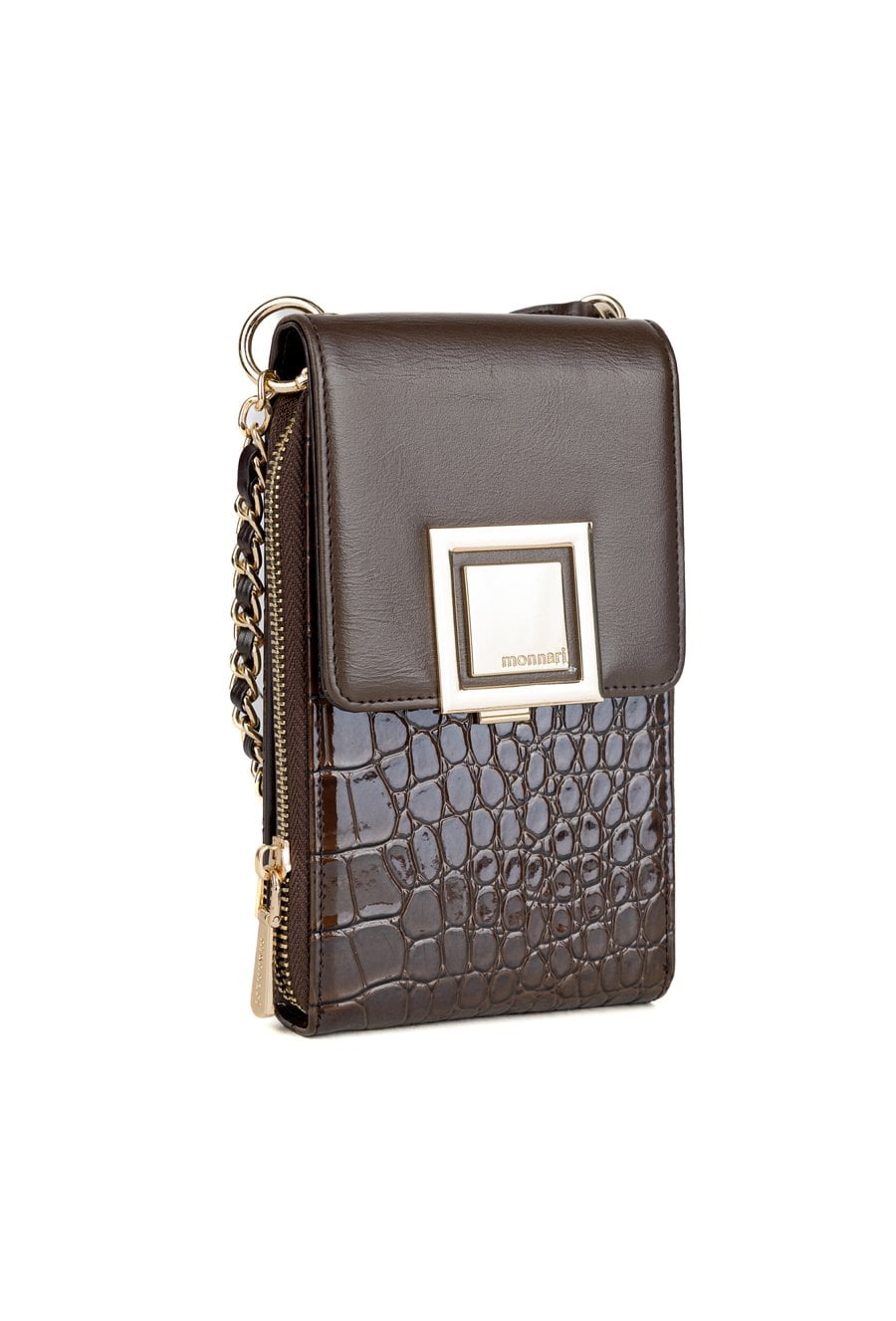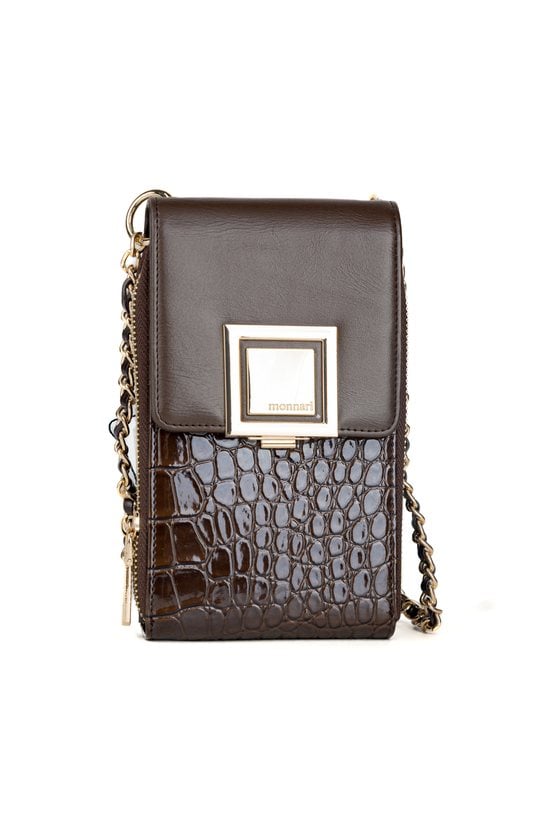 Stylowa i kompaktowa torebka damska, idealna na telefon i najpotrzebniejsze drobiazgi. Dwukomorowa konstrukcja zapinana na praktyczną klapkę pozwala na wygodną organizację, a jedna z komór została wyposażona w dedykowane miejsce na karty. Torebka zawieszona jest na krótkiej rączce oraz dekoracyjnym pasku z łańcuszkiem Torbę należy przechowywać w dołączonym woreczku. Wymiary: 12 cm x 18,5 cm x 3 cm.