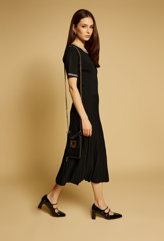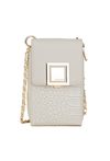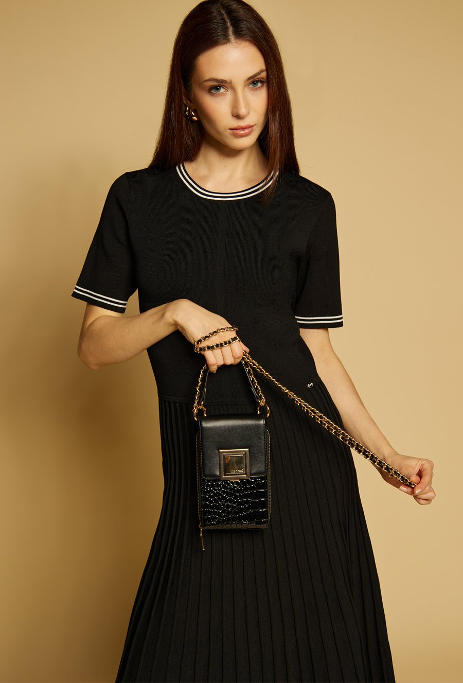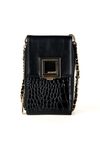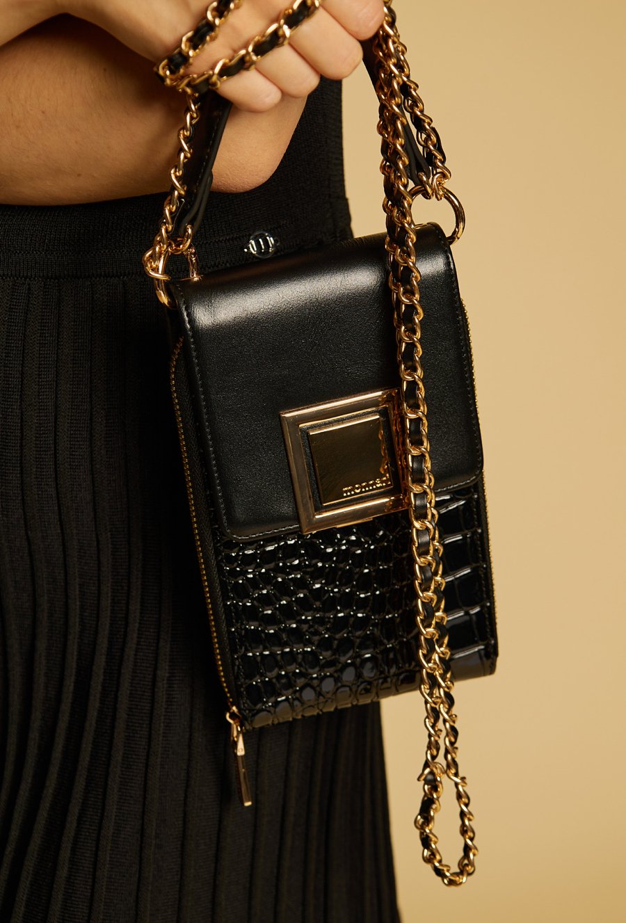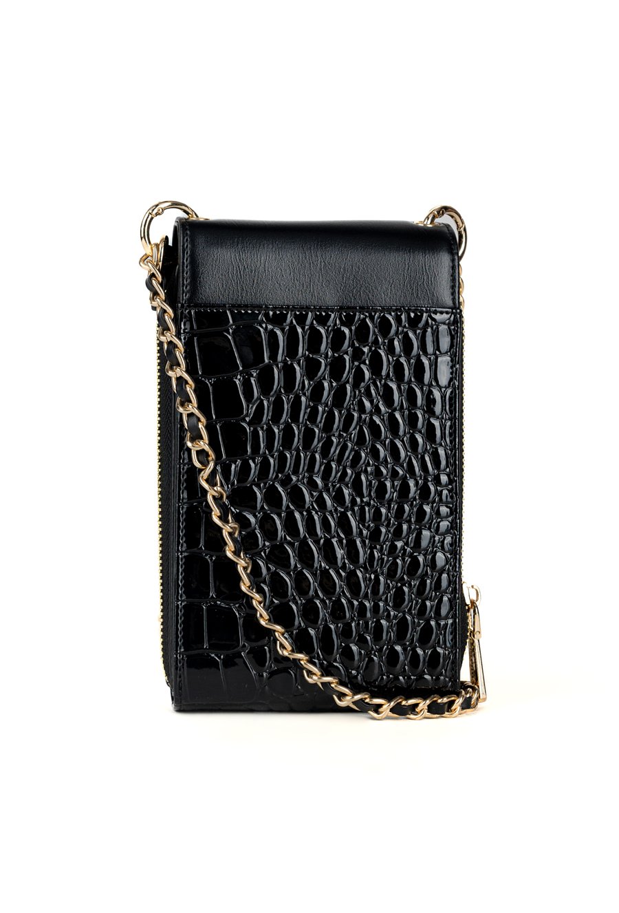 Stylowa i kompaktowa torebka damska, idealna na telefon i najpotrzebniejsze drobiazgi. Dwukomorowa konstrukcja zapinana na praktyczną klapkę pozwala na wygodną organizację, a jedna z komór została wyposażona w dedykowane miejsce na karty. Torebka zawieszona jest na krótkiej rączce oraz dekoracyjnym pasku z łańcuszkiem Torbę należy przechowywać w dołączonym woreczku. Wymiary: 12 cm x 18,5 cm x 3 cm.