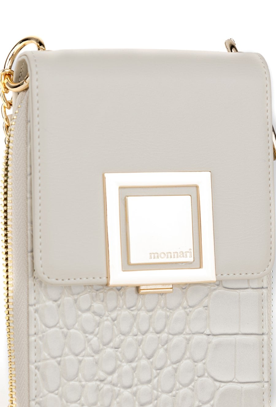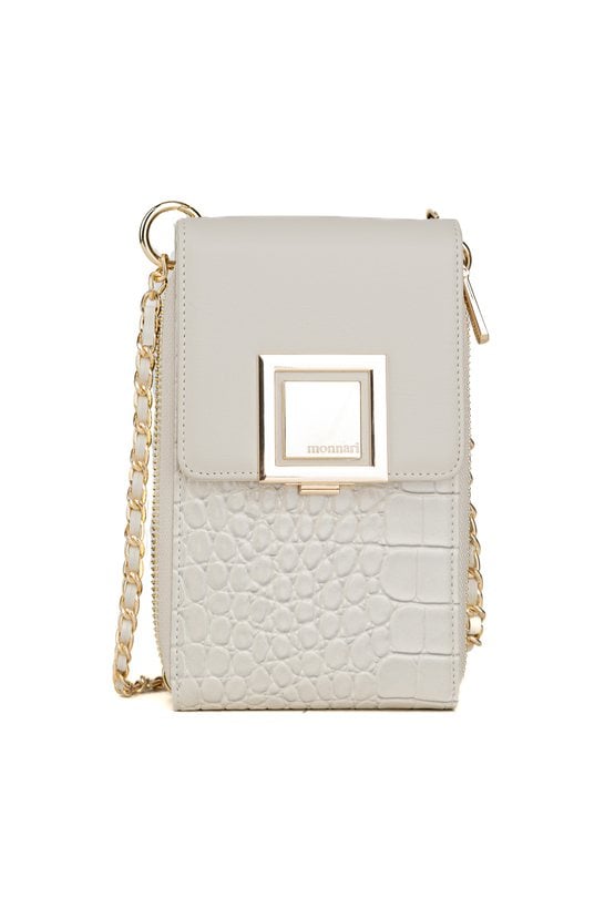Stylowa i kompaktowa torebka damska, idealna na telefon i najpotrzebniejsze drobiazgi. Dwukomorowa konstrukcja zapinana na praktyczną klapkę pozwala na wygodną organizację, a jedna z komór została wyposażona w dedykowane miejsce na karty. Torebka zawieszona jest na krótkiej rączce oraz dekoracyjnym pasku z łańcuszkiem Torbę należy przechowywać w dołączonym woreczku. Wymiary: 12 cm x 18,5 cm x 3 cm.