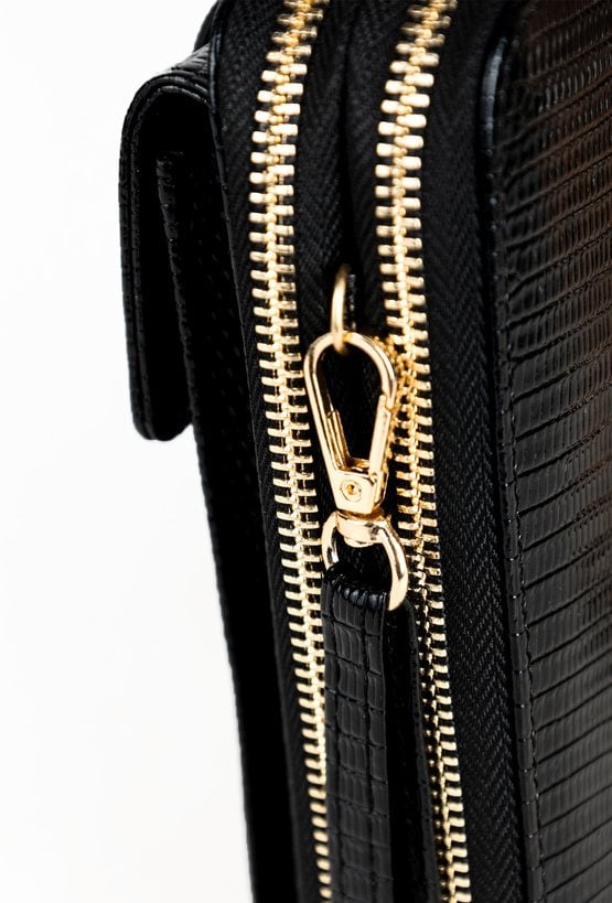 Poręczna torba damska o wymiarach 11 × 18,5 × 6,5 cm, zaprojektowana z myślą o przechowywaniu telefonu i najpotrzebniejszych drobiazgów. Model dwukomorowy, wykończony jasnymi, logowanymi podszewkami, zapinany na praktyczne suwaki. Z przodu znajduje się dodatkowa kieszonka zamykana na klapę, która stanowi zarówno funkcjonalny, jak i dekoracyjny akcent. Idealna na spacer, zakupy czy wyjścia, gdy potrzebujesz mieć tylko to, co najważniejsze, zawsze pod ręką. Torbę należy przechowywać w dołączonym woreczku