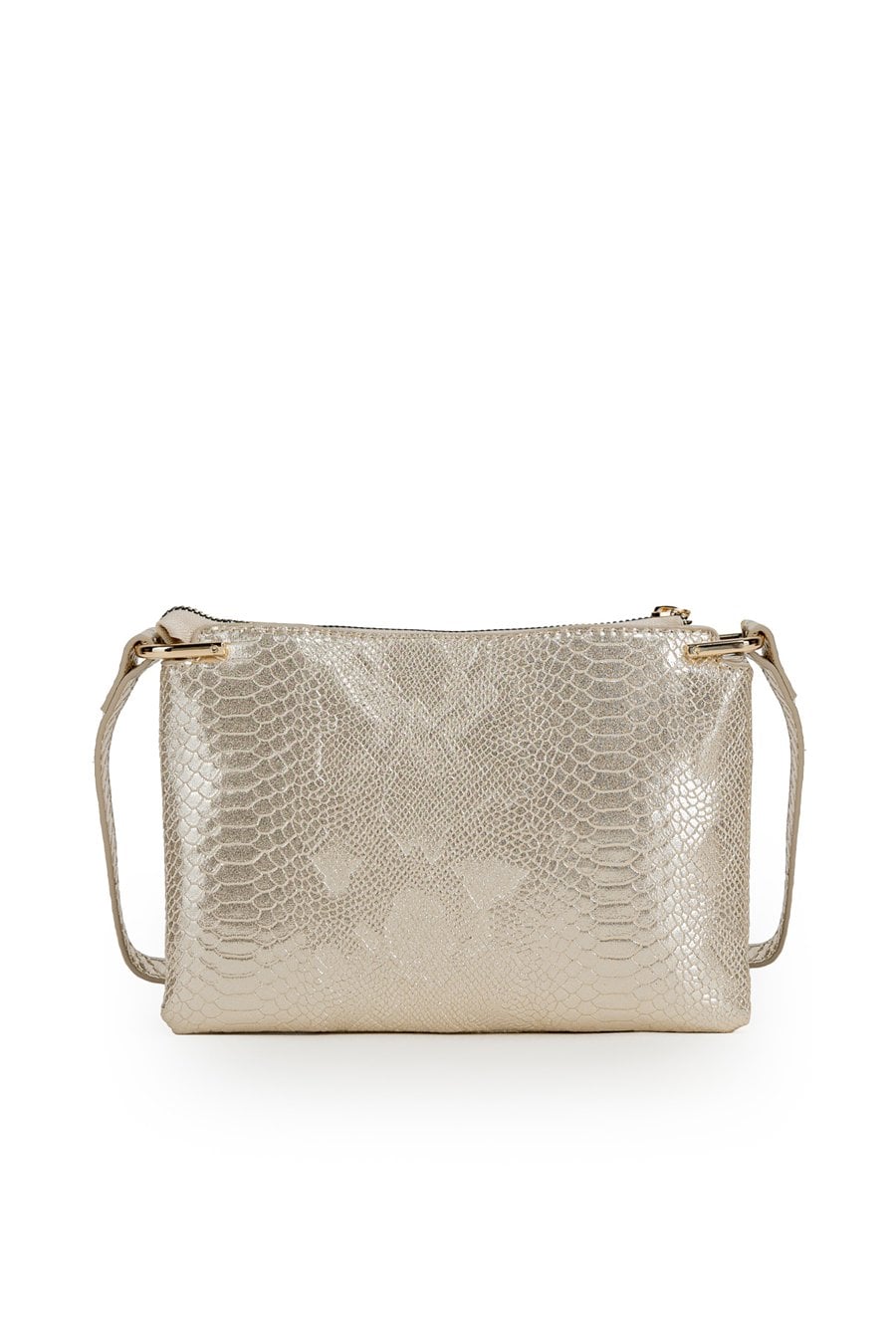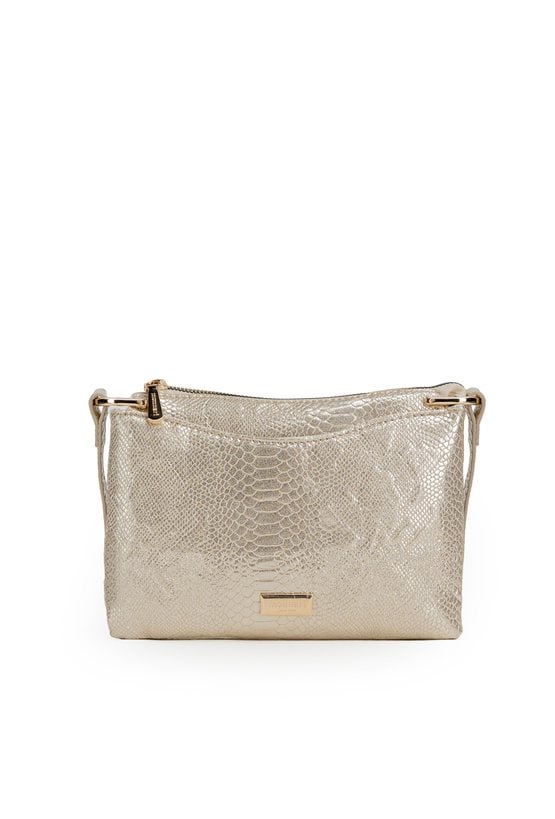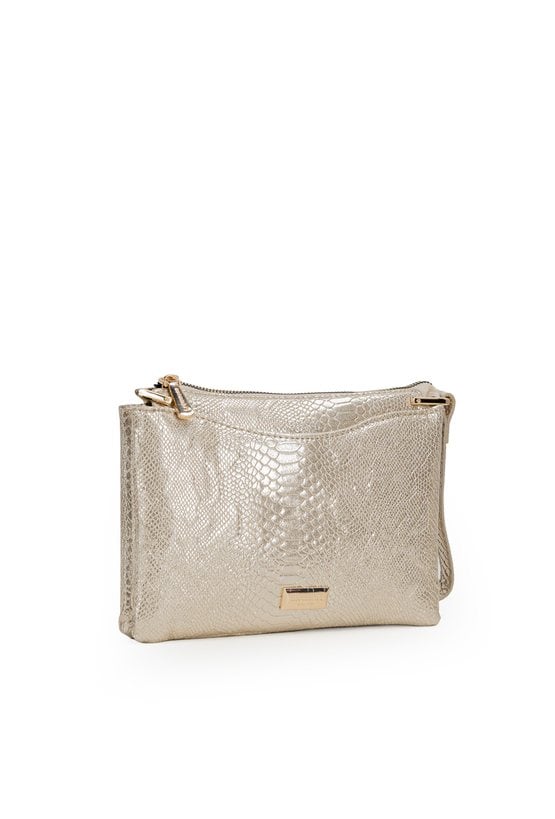 Elegancka torebka damska o wymiarach 22 × 16 × 3,5 cm. Jednokomorowy model z przedziałem pośrodku oraz dodatkowymi kieszonkami na drobiazgi. Torebka zawieszona na regulowanym pasku. Torbę należy przechowywać w dołączonym woreczku.