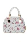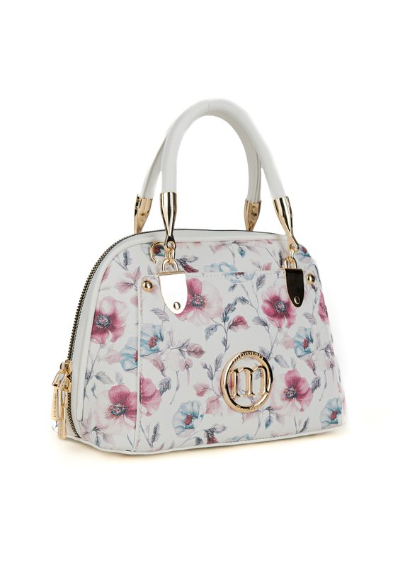 Mały kuferek damski z kwiatowym wzorem, który dodaje mu lekkości i kobiecego uroku. Torba jednokomorowa, z jasną, logowaną podszewką oraz dodatkowymi kieszonkami na drobiazgi, ułatwiającymi organizację. Torba zawieszona na rączkach, a w zestawie znajduje się pasek z regulacją. Model ten świetnie dopełni wiosenno-letnie stylizacje. Torbę należy przechowywać w załączonym woreczku. Wymiary: 30 cm x 19 cm x 11 cm.