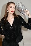 Mała, elegancka torebka damska stworzona z myślą o wyjątkowych okazjach. Torba jednokomorowa o jasnej, logowanej podszewce z dodatkową kieszonką na drobiazgi. Torebka zawieszona na efektownym, złotym łańcuszku z możliwością jego odpięcia. Błyszcząca, cekinowa powierzchnia przyciąga spojrzenia i nadaje całości wyrazisty, glamour charakter. Torbę należy przechowywać w załączonym woreczku. Wymiary torby: 30 cm x 15 cm x 6 cm