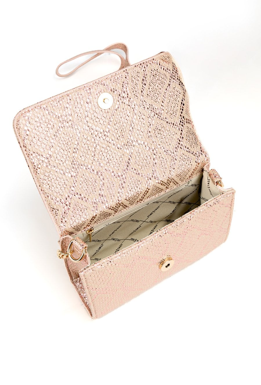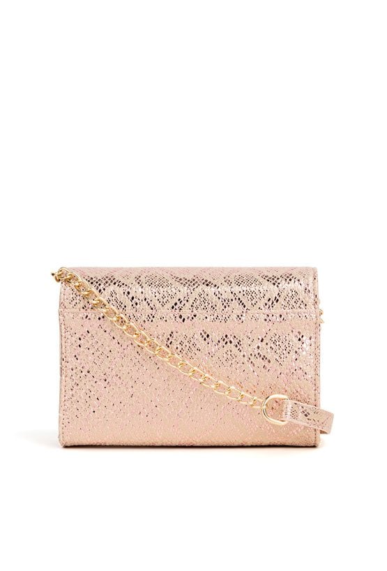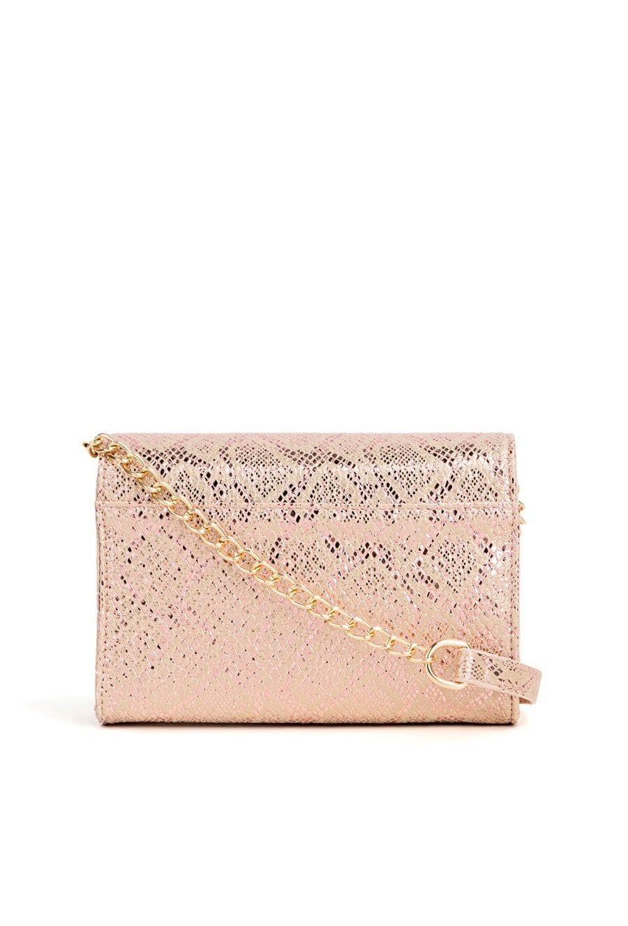 Mała torebka damska z połyskiem o wymiarach 19,5 × 13,5 × 6,5 cm to elegancki dodatek na co dzień i na wyjścia. Torba jest jednokomorowa, ma jasną, logowaną podszewkę oraz dodatkowe kieszonki na drobiazgi, które ułatwiają organizację. Torba zapinana na klapę z napą zapewnia wygodne i bezpieczne przechowywanie najpotrzebniejszych rzeczy. Torbę należy przechowywać w dołączonym woreczku.