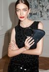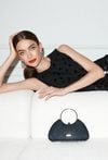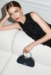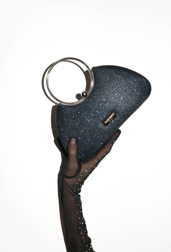 Połyskująca torebka damska o wymiarach 21,5 × 9,5 × 5 cm to eleganckie uzupełnienie wieczorowej stylizacji. Jednokomorowe wnętrze z jasną, logowaną podszewką pomieści niezbędne drobiazgi. Model zawieszony jest na sztywnej rączce, a w zestawie znajduje się również odpinany pasek w formie łańcuszka, który umożliwia wygodne noszenie na ramieniu. Należy przechowywać w dołączonym woreczku.