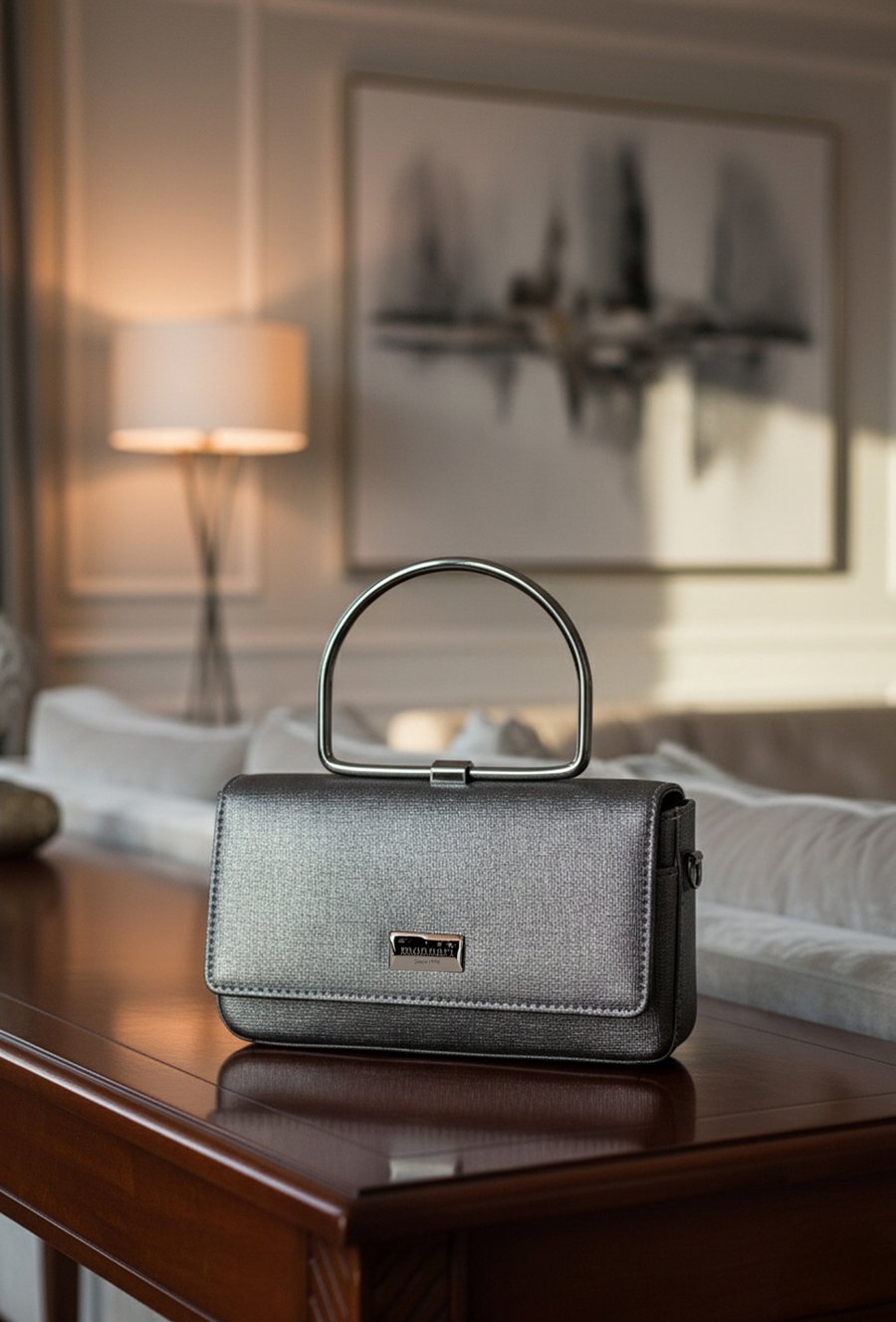 Połyskująca mała torebka damska o wymiarach 19 × 11,5 × 4,5 cm, idealna jako elegancki dodatek do wieczorowych stylizacji. Torba jednokomorowa o jasnej logowanej podszewce z dodatkową kieszonka na drobiazgi. Model zawieszony na sztywnej, metalowej rączce, która nadaje całości wyrafinowanego charakteru. W zestawie znajduje się również łańcuszkowy pasek. Torebkę należy przechowywać w dołączonym woreczku.